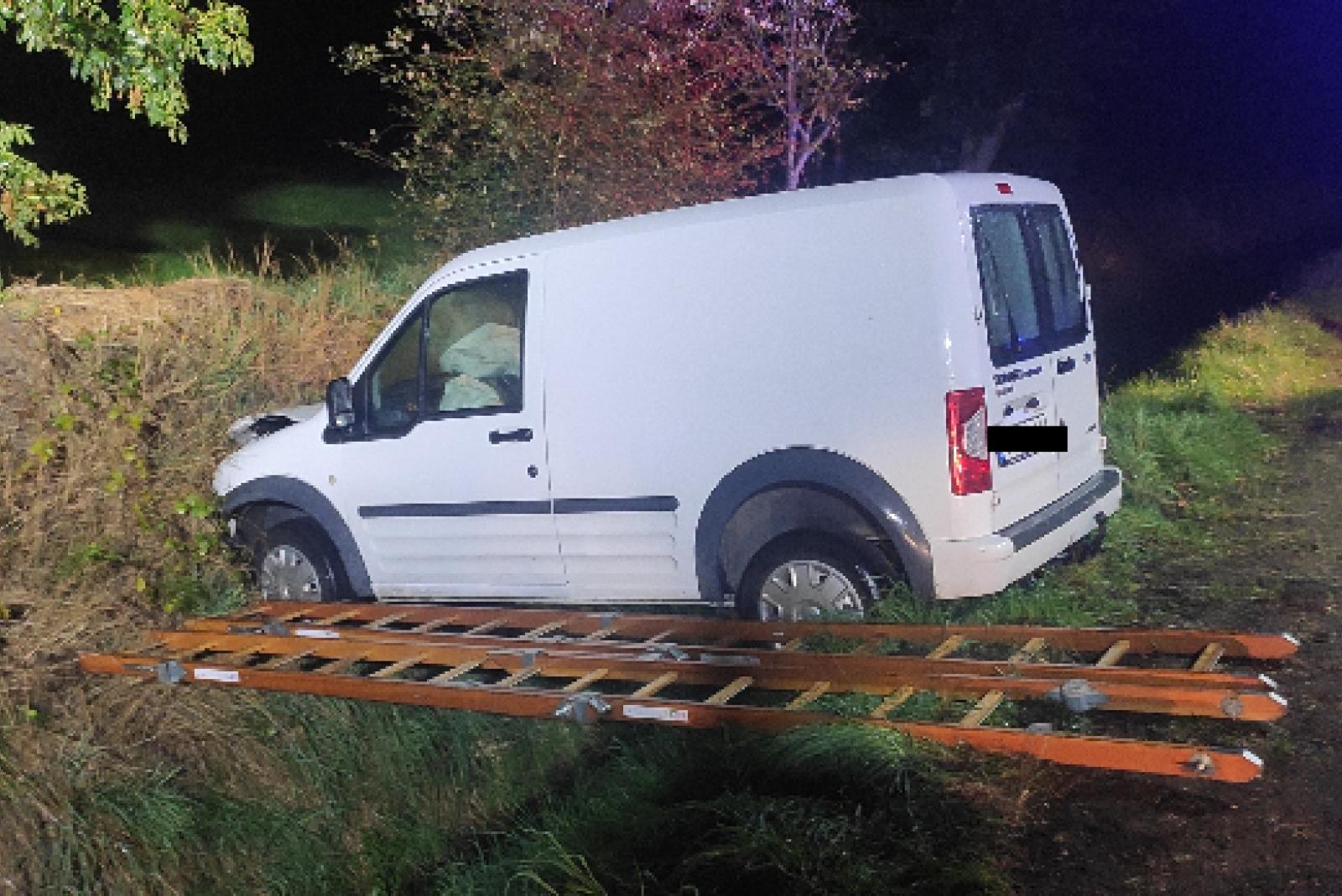Kastenwagen hing über Graben – Feuerwehr rettet Fahrer