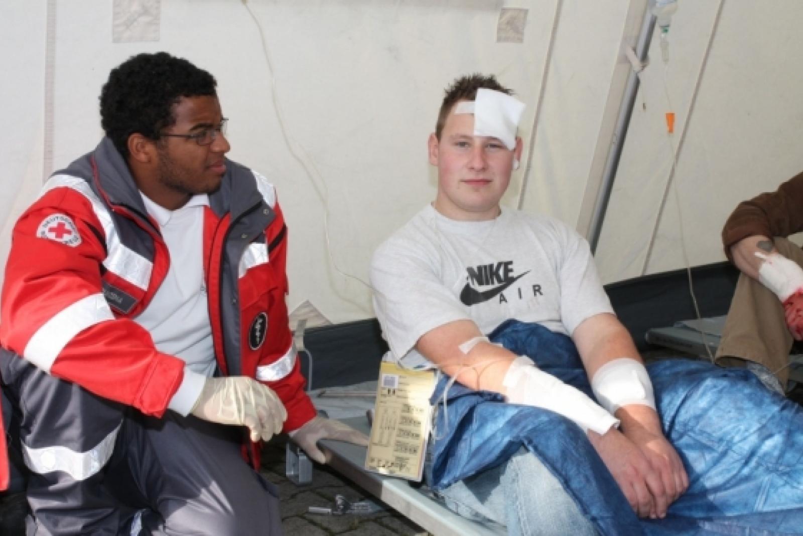 Der Alarm für die Großübung am Emssperrwerk in Gandersum wurde am Samstagvormittag um 11 Uhr ausgelöst. Rund 200 Einsatzkräfte der Bundeswehr, Feuerwehr, dem Technischen Hilfswerk und dem Deutschen Roten Kreuz waren daran beteiligt.