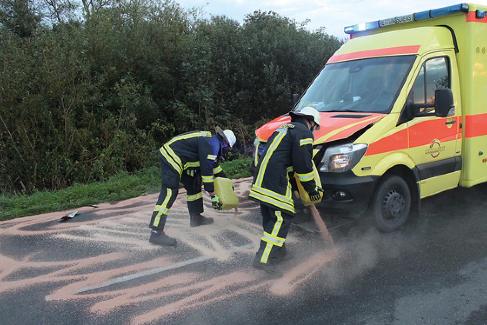 Ein Rettungswagen ist gestern Abend auf der Neu-Etumer Straße zwischen Pilsum und Greetsiel auf einer Einsatzfahrt mit einem Volkswagen Touran zusammengestoßen. Als Folge des Zusammenstoßes liefen Betriebsstoffe aus dem Rettungswagen aus, sodass um 18.17 Uhr die Feuerwehr Krummhörn-Nord alarmiert wurde.