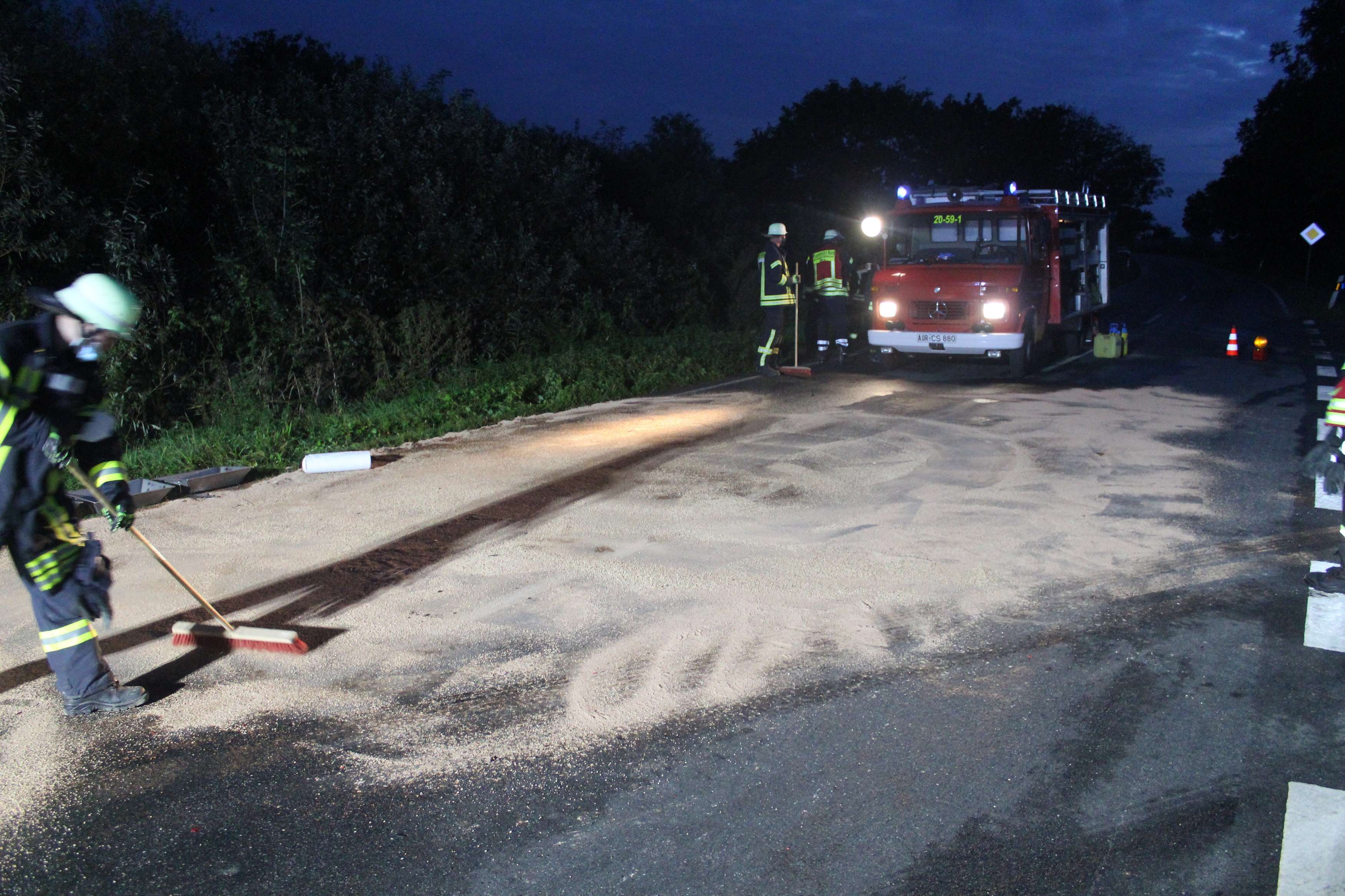 Nach ersten Erkenntnissen wurde bei dem Unfall glücklicherweise niemand verletzt, heißt es in einer Mitteilung der Feuerwehr. Die Einsatzkräfte verhinderten mit Hilfe von Auffangwannen und durch das Ausbringen von speziellem Bindemittel eine weitere Ausbreitung der Betriebsstoffe.