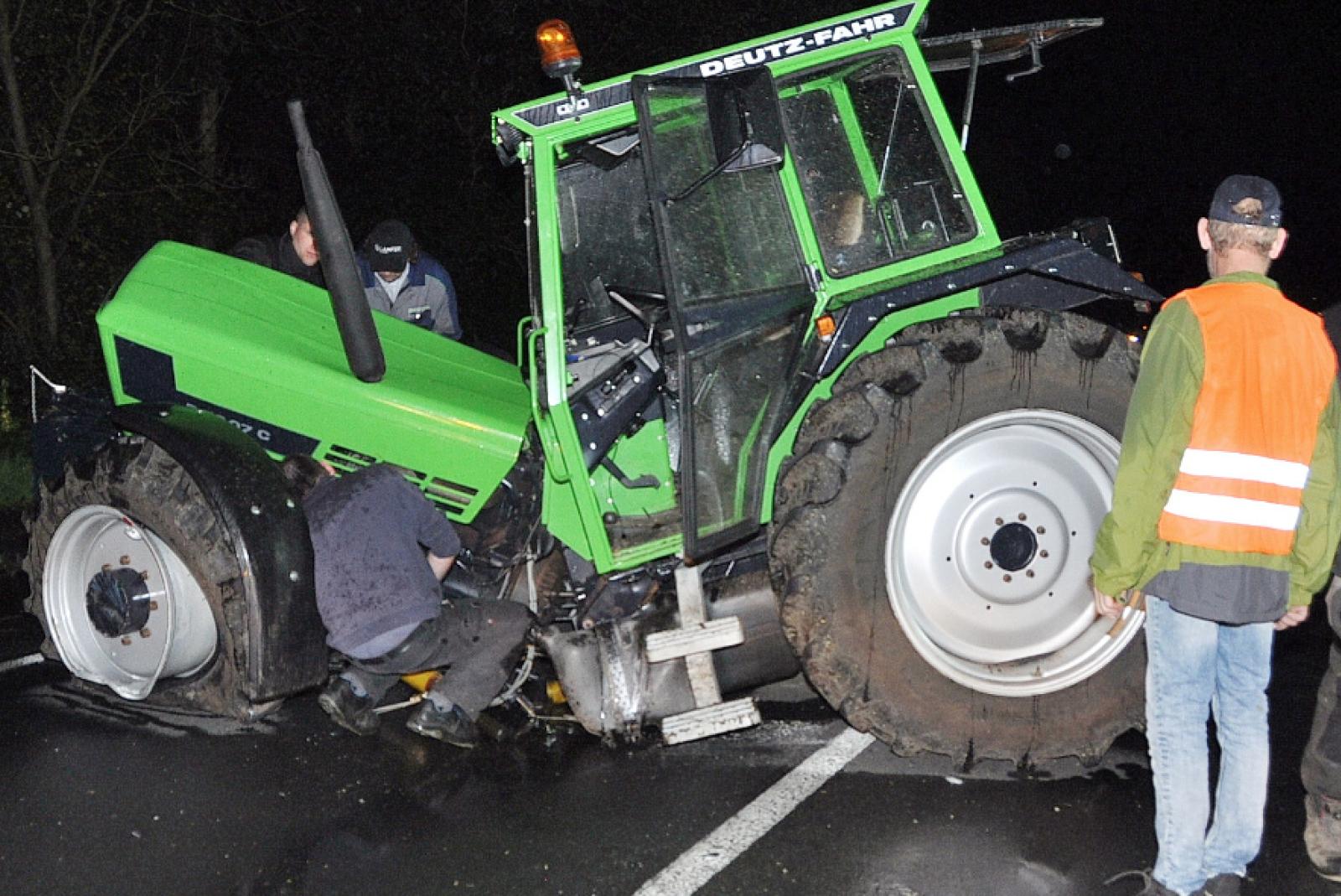 Am Samstagabend ist es auf der Timmeler Straße in Hatshausen zu einem schweren Verkehrsunfall gekommen, bei dem ein Trecker auseinander gebrochen ist.