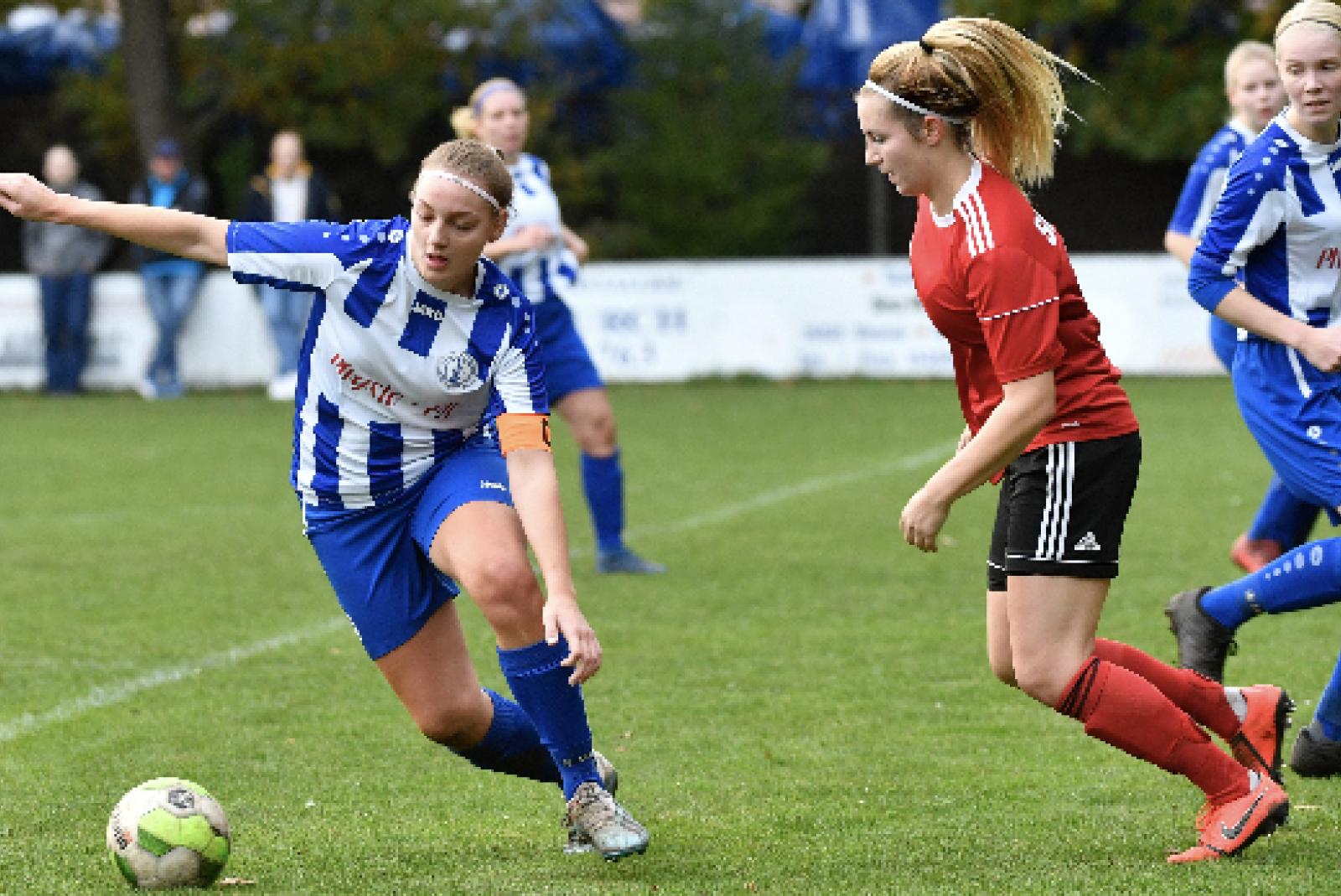 Gegen die SG TiMoNo II muss sich Möhlenwarf auch im sechsten Bezirksliga-Spiel geschlagen geben. Eine Gäste-Stürmerin machte der Abwehr der Rheiderländerinnen besonders zu schaffen.