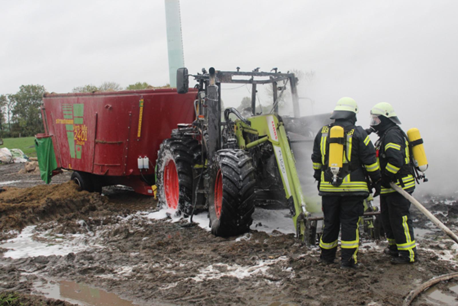 Diverse Feuerwehren mussten am Freitagvormittag um 10.07 Uhr zu einem Traktorbrand in die Krummhörner Ortschaft Woltzeten ausrücken. Auf dem Hof eines landwirtschaftlichen Betriebes stand ein Traktor in Brand. Ein Trupp unter Atemschutz konnte das Feuer binnen kurzer Zeit unter Kontrolle bringen. Zur Brandbekämpfung kam unter anderem auch Schaummittel zum Einsatz.