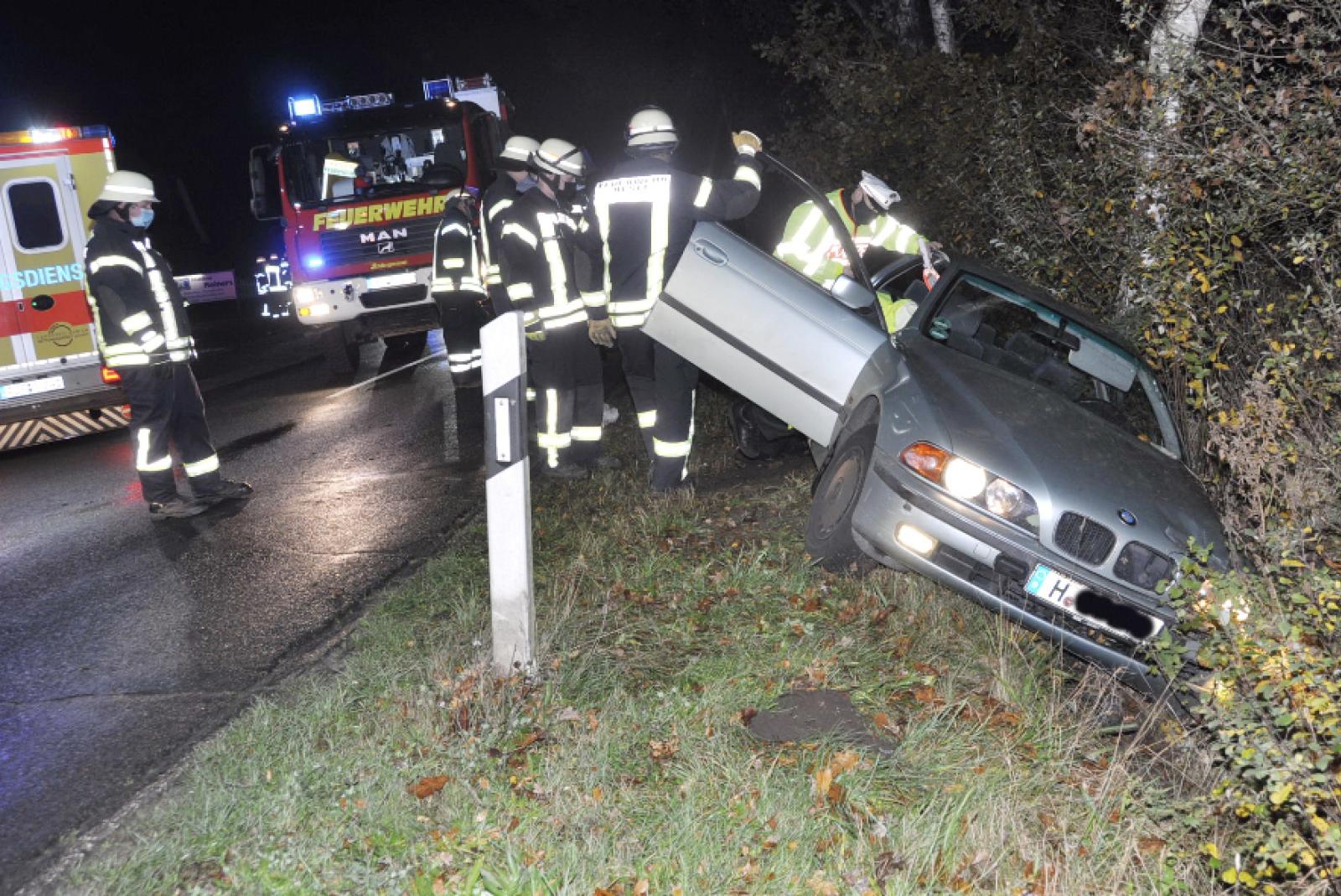 Der Fahrer eines BMW war auf der Firreler Straße in Firrel unterwegs. Der Mann war aus noch unbekannten Gründen von der Fahrbahn abgekommen und mit dem Wagen in einem Graben gelandet, heißt es in einer Mitteilung der Kreisfeuerwehr.
