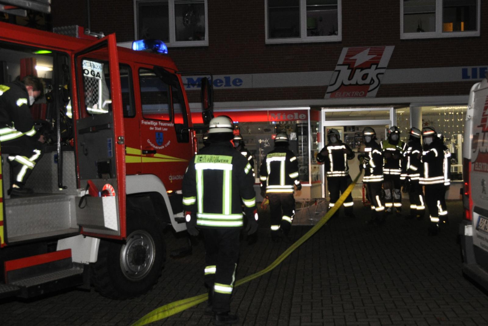 Heute Morgen sind die Feuerwehren aus Loga und Leer zu einem Betriebsgebäudebrand an der Hauptstraße alarmiert worden. Eine Mitarbeiterin eines Elektrofachgeschäfts hatte beim Öffnen des Ladens eine Verrauchung der Verkaufsräume bemerkt und den Notruf gewählt.