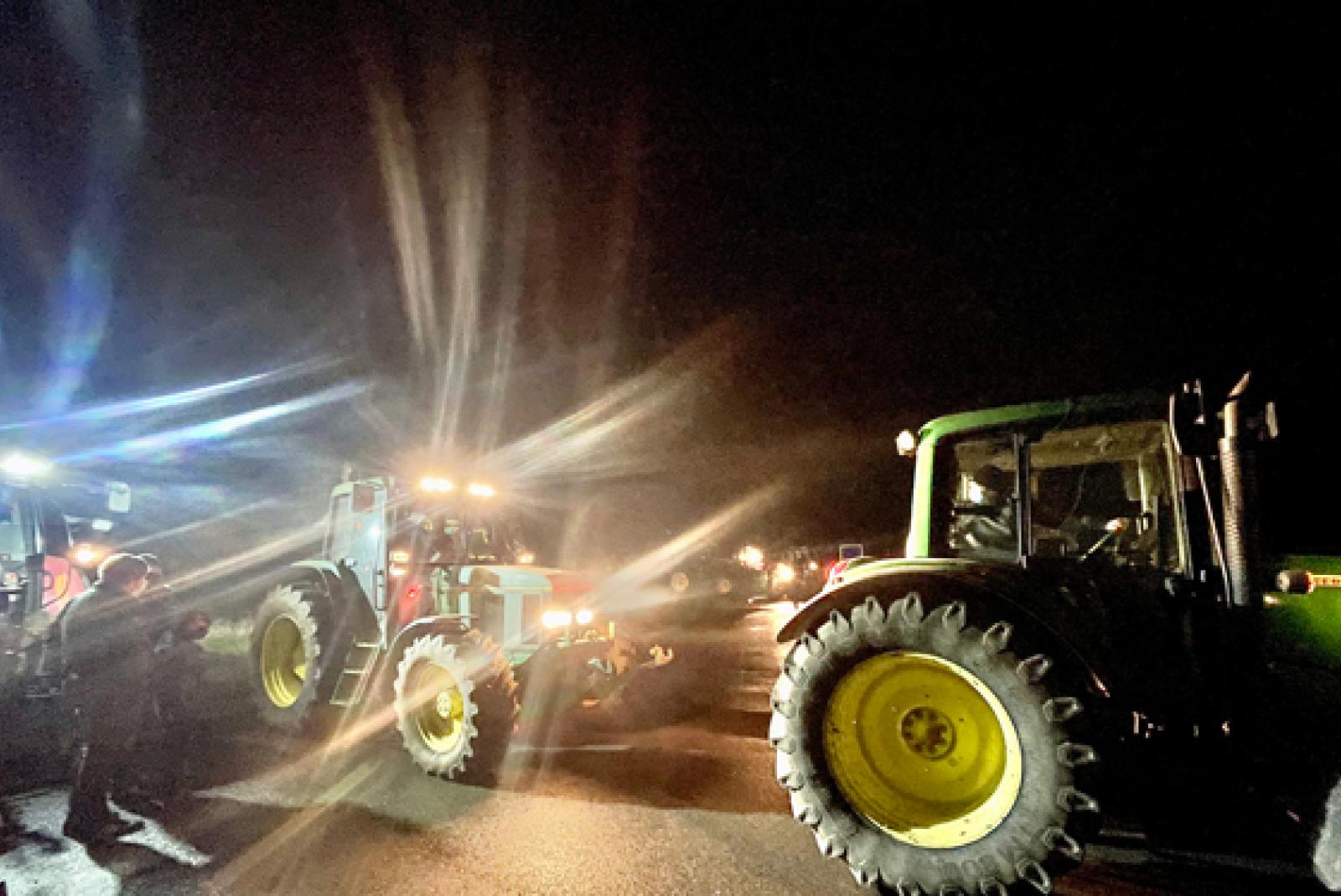 Rund 200 Landwirte blockieren mit Traktoren Aldi-Zentrallager in Hesel
