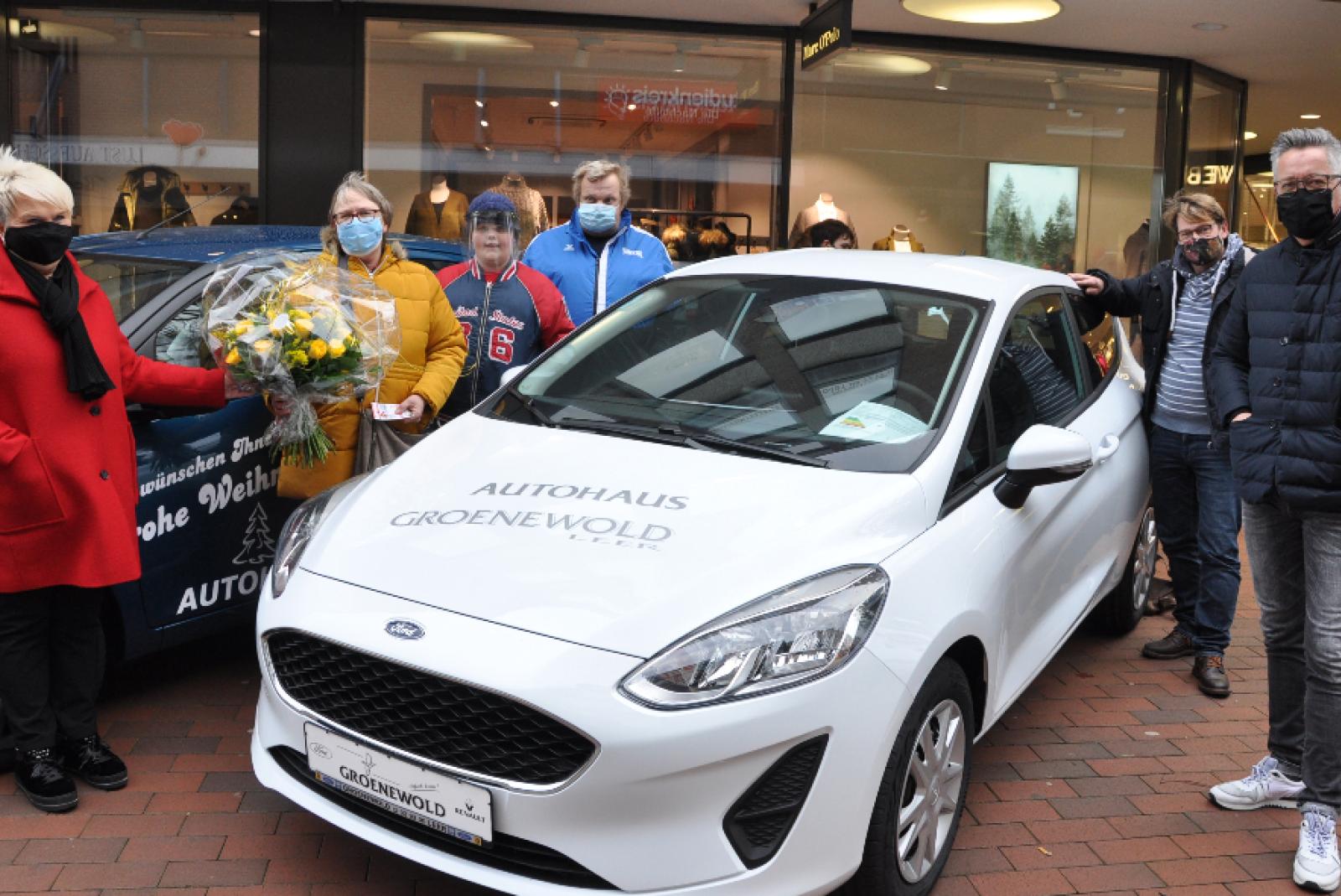 Glückliche Gewinnerin des Hauptpreises der Los-Serie B der diesjährigen Weihnachtsverlosung in Leer ist Martina Zarbock. Im Beisein ihres Mannes Peter und ihres Sohnes David nahm die Leeranerin von Gesa Groenewold vom gleichnamigen Autohaus einen Blumenstrauß und die Schlü...