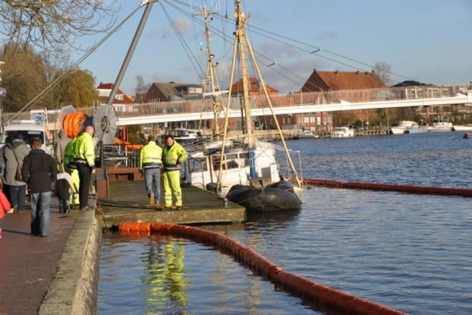 Das gesunkene Schiff soll heute Vormittag aus dem Leeraner Hafenbecken geborgen werden.