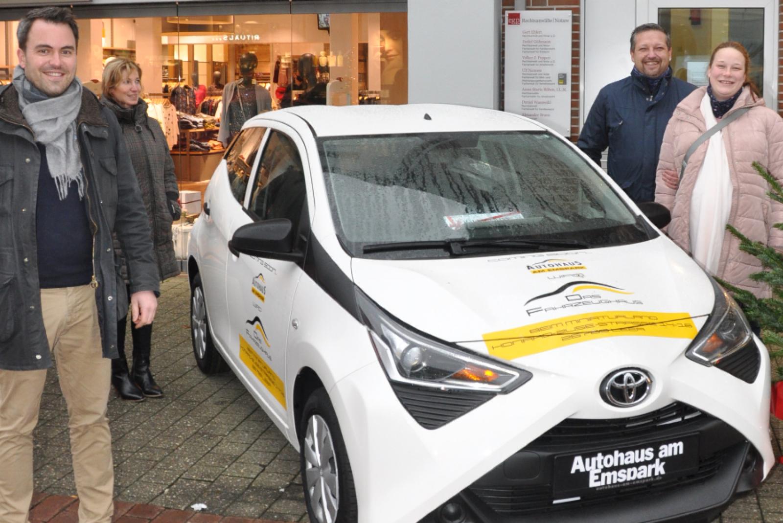Franziska Kutschera konnte ihr Glück kaum fassen: Die Frau aus Loga hat bei der Weihnachtsverlosung der Werbegemeinschaft Leer einen Toyota Aygo gewonnen, den Hauptpreis der Los-Serie A.