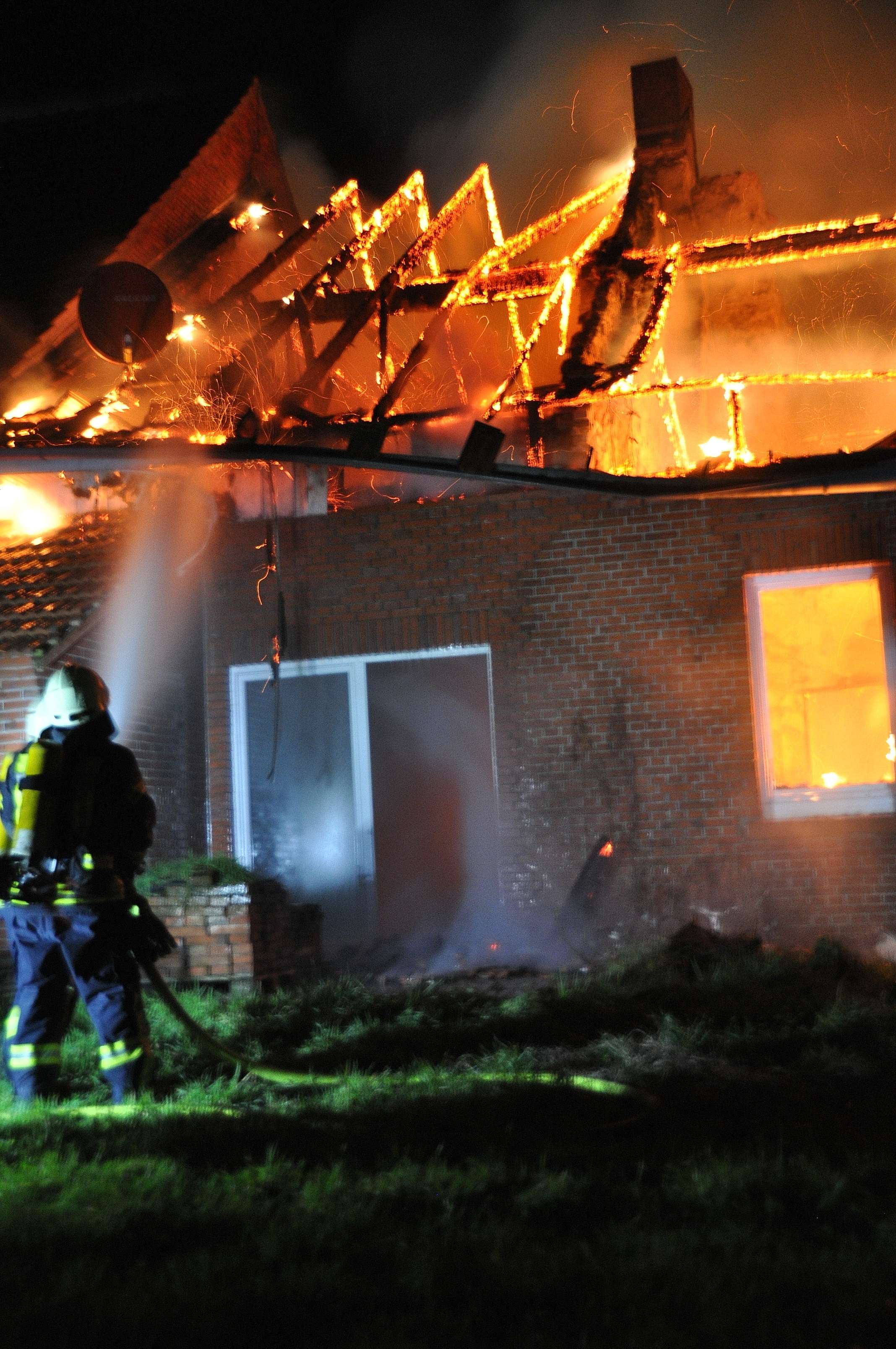 Wie die Polizeiinspektion Leer-Emden auf RZ-Nachfrage mitteilte, wurde das Feuer um 2.13 Uhr von Anwohnern gemeldet. Offenbar war der Brand im Dachstuhlbereich ausgebrochen, das Haus stand bald lichterloh in Flammen.