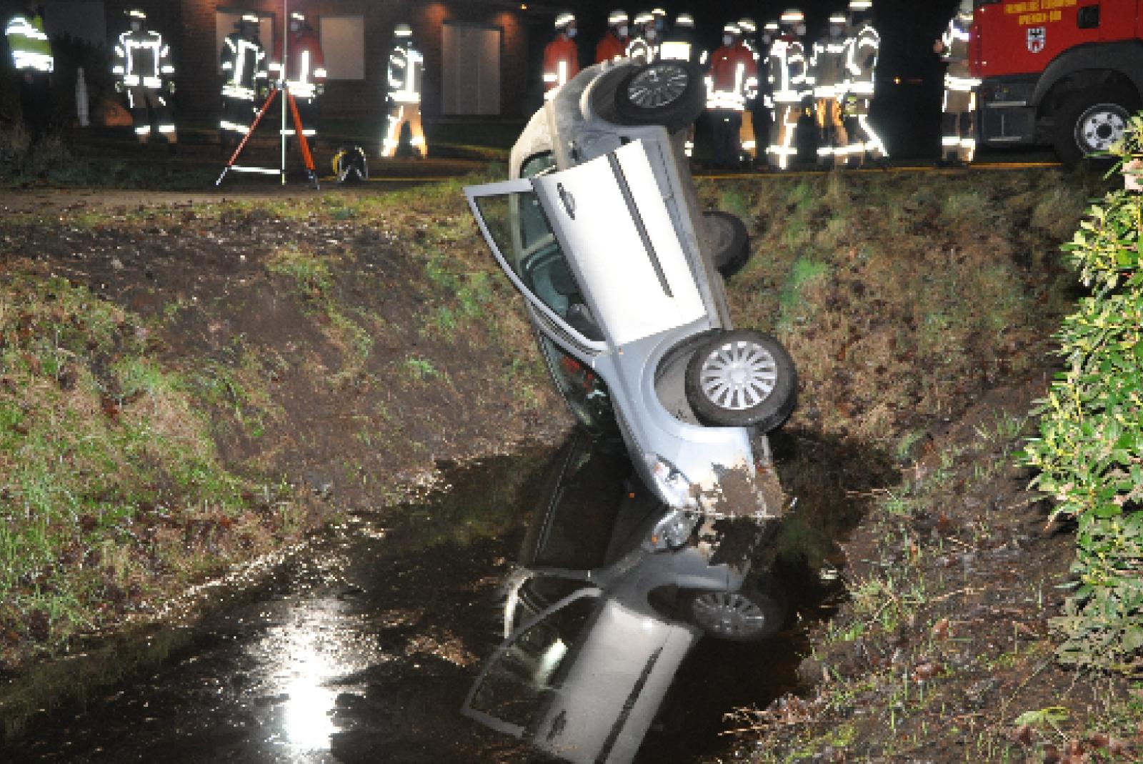 Am Heiligabend um 22.10 Uhr ist eine 81-Jährige mit ihrem Auto in der Straße Nordobenende in Uplengen verunglückt, ihr Opel Astra landete in einem Kanal. Die Frau blieb unverletzt.