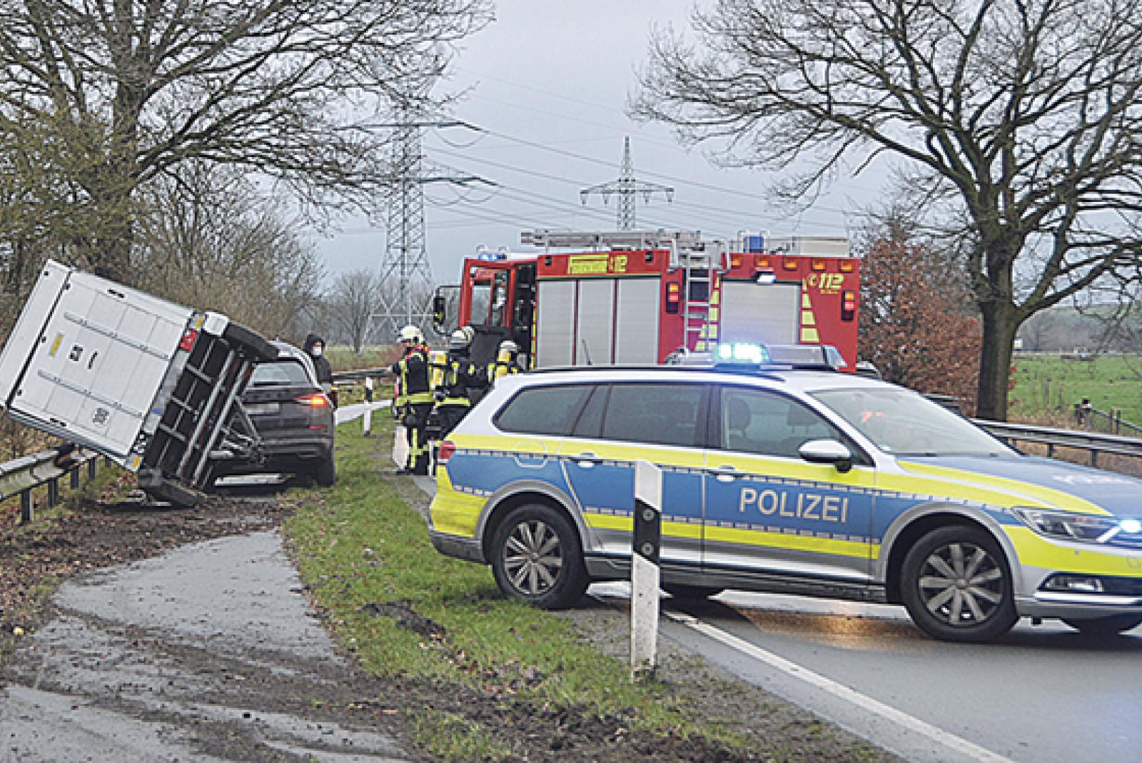 Ein Fahrzeug mit Anhänger war laut Feuerwehr ins Schlingern geraten. In Folge dessen war es zum Zusammenstoß mit zwei weiteren Fahrzeugen gekommen. Da nach ersten Meldungen eines der Fahrzeuge nach dem Unfall brennen sollte, wurde um 15.16 Uhr die Feuerwehr Loga alarmiert.