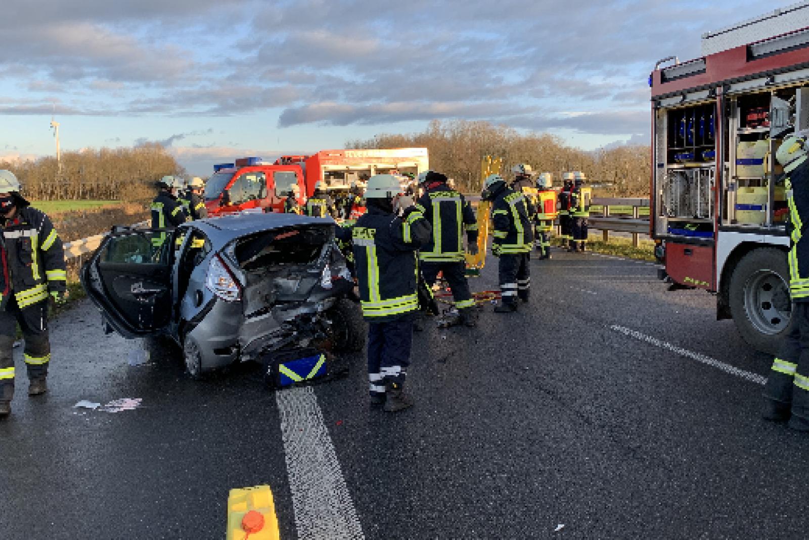 Bei einem Verkehrsunfall mit vier beteiligten Fahrzeugen auf der Autobahn 31 in Höhe der Anschlussstelle Riepe haben sich heute sieben Insassen verletzt. Ein sechs Monate alter Säugling und sein Vater aus Warendorf bei Münster zogen sich derart schwere Verletzungen zu, dass sie mit zwei Rettungshubschraubern in Begleitung der Mutter in ein Krankenhaus geflogen wurden. Die Feuerwehr musste eine eingeklemmte Person aus einem Auto befreien. Die anderen Verletzten wurden durch den Rettungsdienst versorgt.