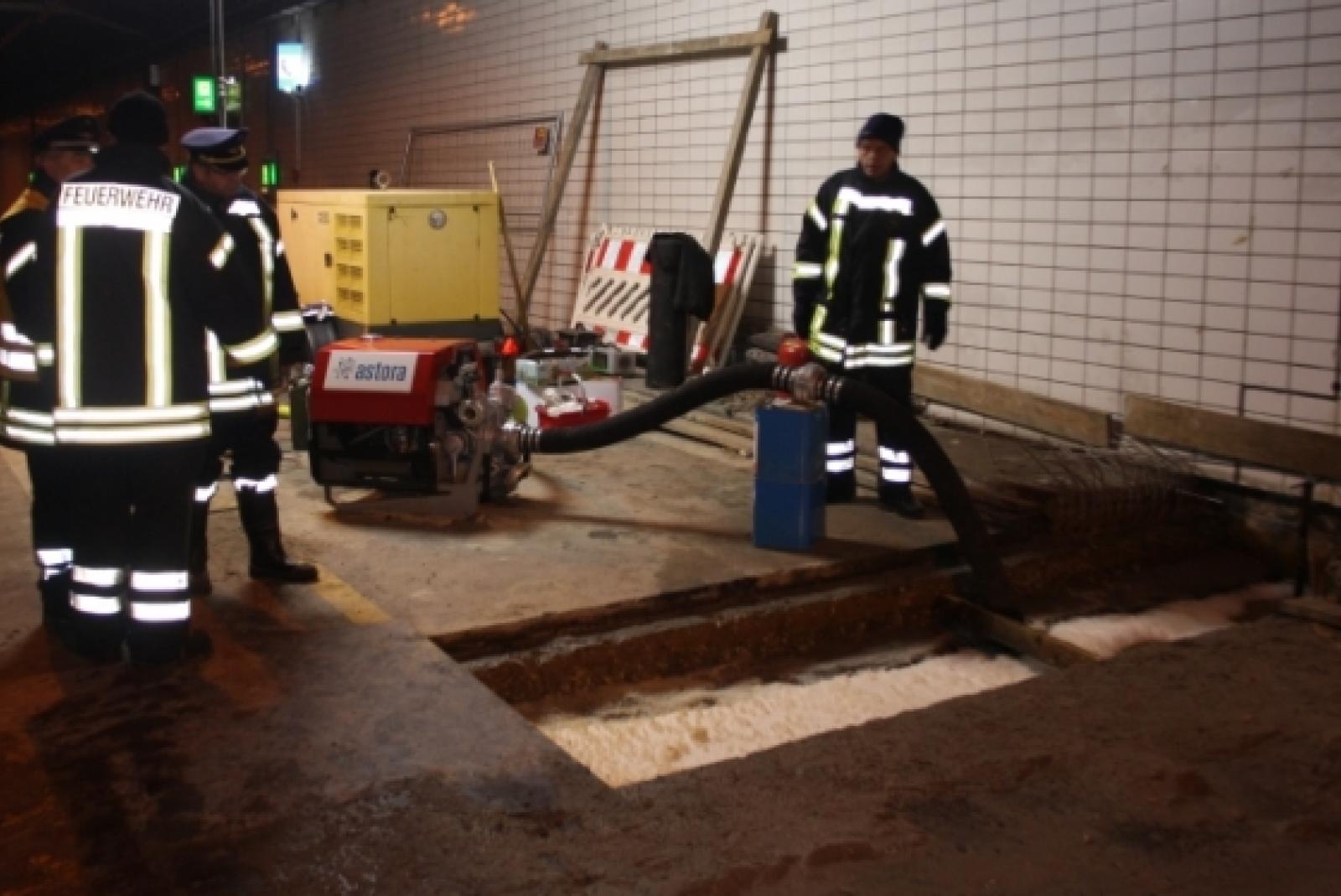 Ohne Unterlass sprudelt das Wasser aus einem Loch, das bei Bohrarbeiten im Emstunnel entstanden ist. Ein erster Versuch, die etwa fünf Zentimeter große Öffnung in den Fugen der Wandfliesen zu schließen, ist gescheitert. Von Freitag um 18 Uhr ...