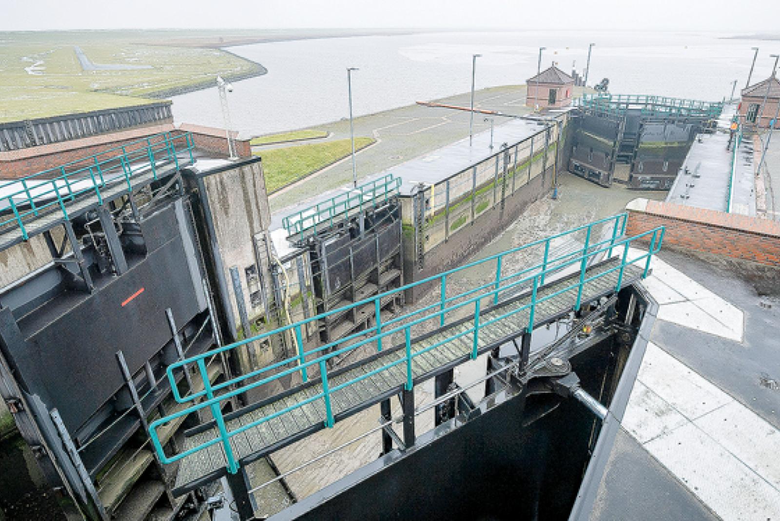 Normalerweise fluten Tausende Kubikmeter Nordseewasser die Seeschleuse Leysiel. Die meterhohen schwarzen Schleusentore gucken dann nur ein Stück weit aus dem Wasser heraus - doch derzeit herrscht in den beiden Schleusenkammern buchstäblich Ebbe. Die Seeschleuse nahe des beliebten Urlaubsortes ...