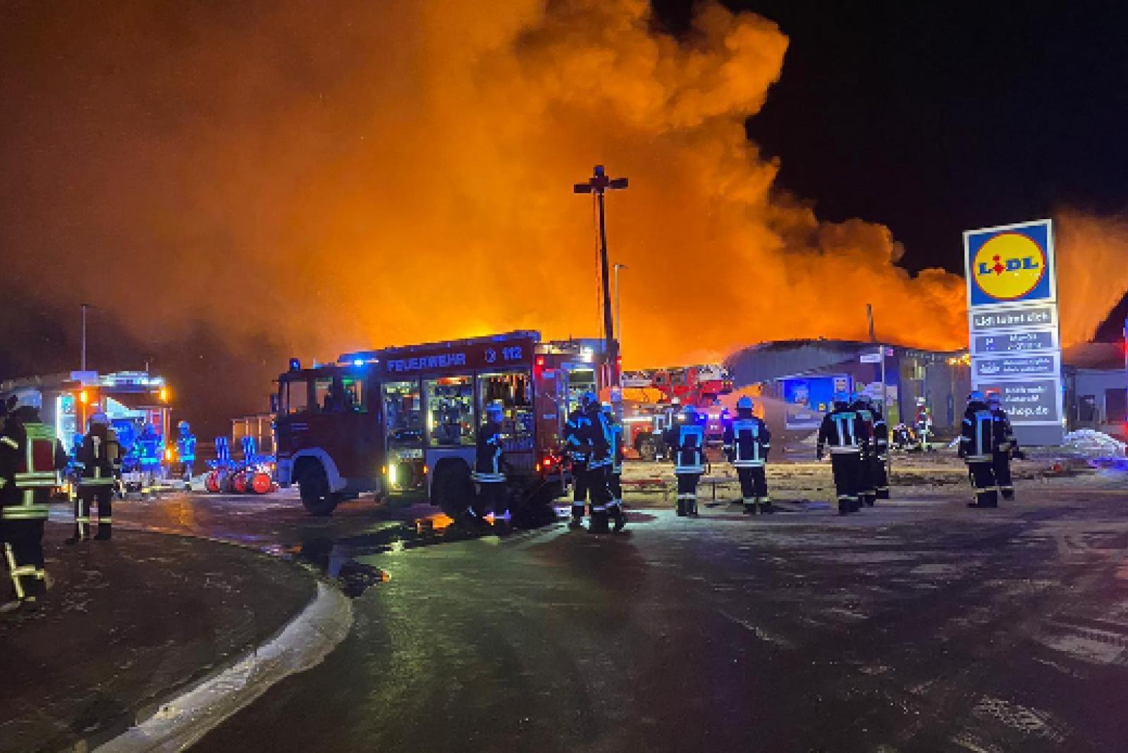 Das Feuer in dem Discounter an der Raiffeisenstraße war am Dienstag vergangener Woche gegen 6 Uhr ausgebrochen und hatte sich im Verlauf auf den gesamten Gebäudekomplex ausgebreitet. Der Markt brannte vollständig aus, es entstand ein Sachschaden in Millionenhöhe. Menschen waren nicht verletzt worden.