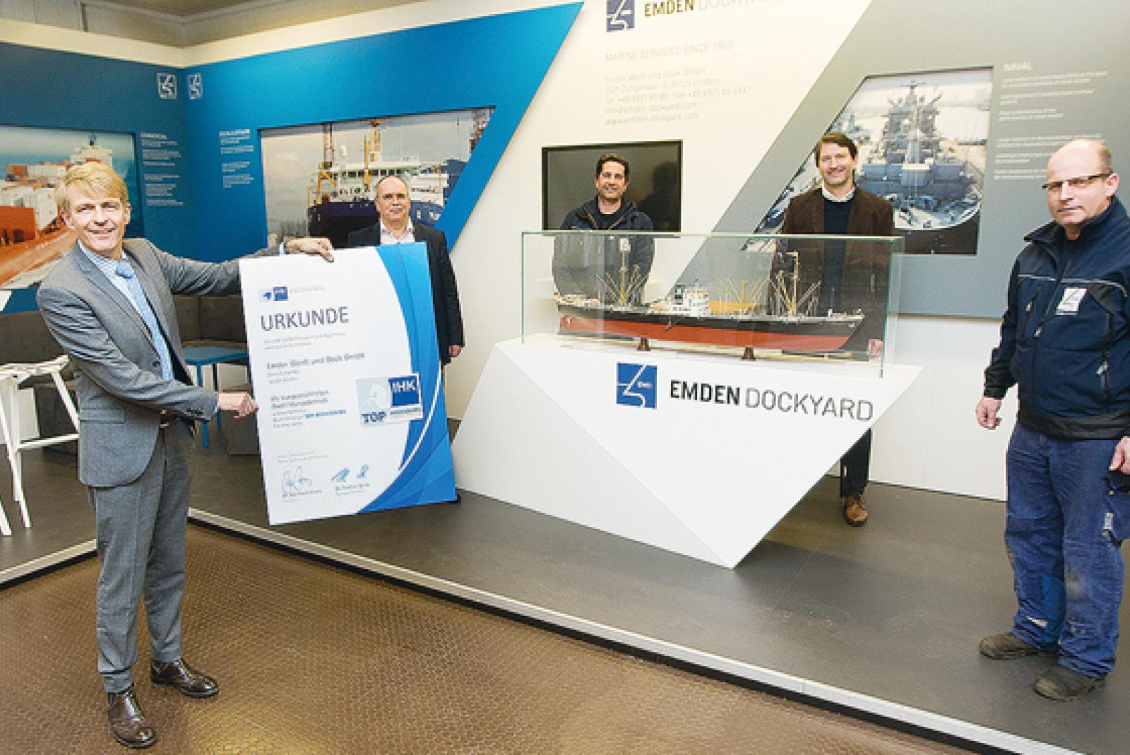 Die Industrie- und Handelskammer für Ostfriesland und Papenburg (IHK) hat die Emder Werft und Dock GmbH mit dem Siegel »TOP Ausbildung« ausgezeichnet. Anfang Februar wurde die Urkunde von IHK-Präsident Dr. Bernhard Brons an das Unternehmen übergeben. Für ...