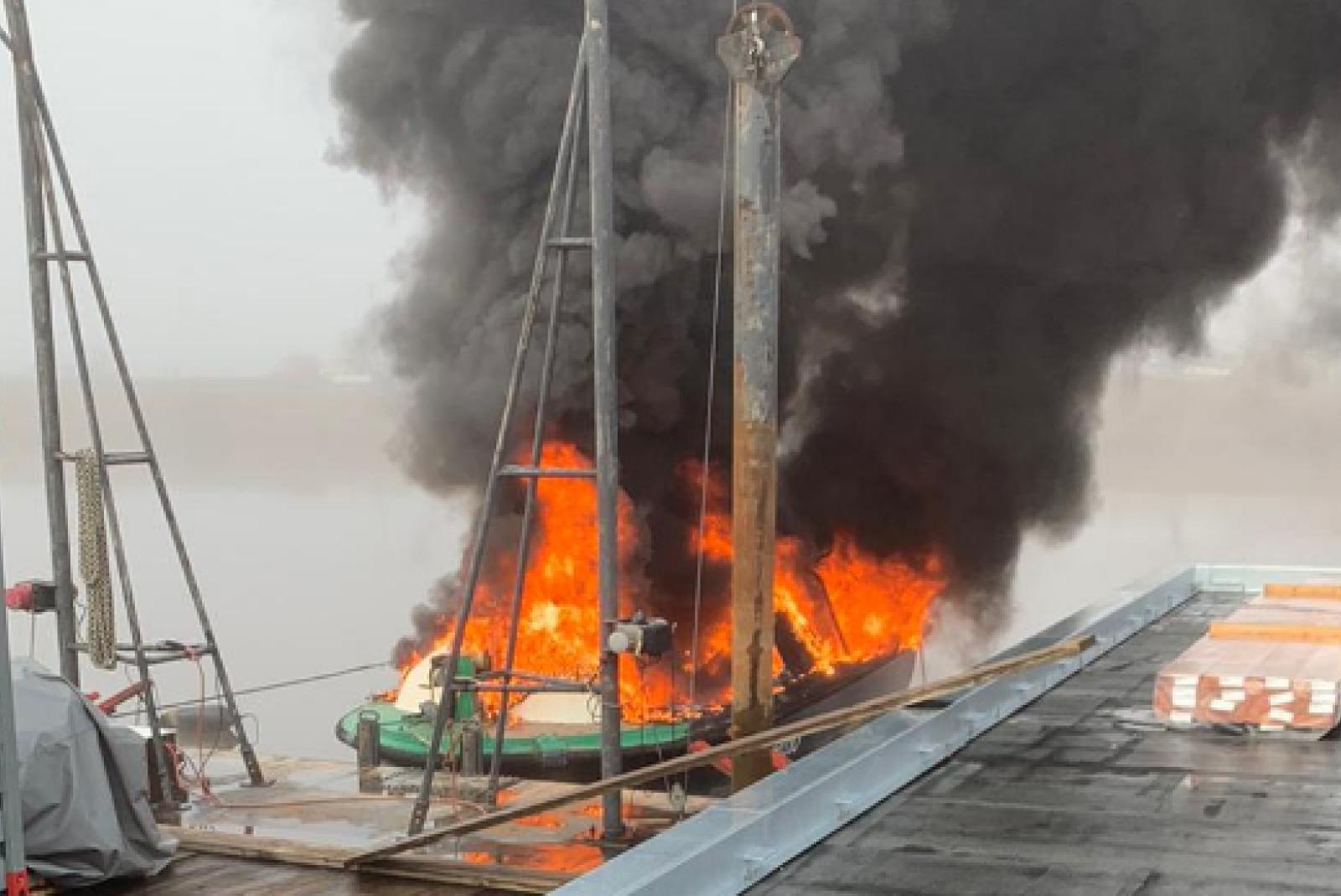 Ein Arbeitsboot ist am Montagmorgen im Hafen von Harlesiel ausgebrannt. Die zwei Besatzungsmitglieder kamen mit dem Schrecken davon.