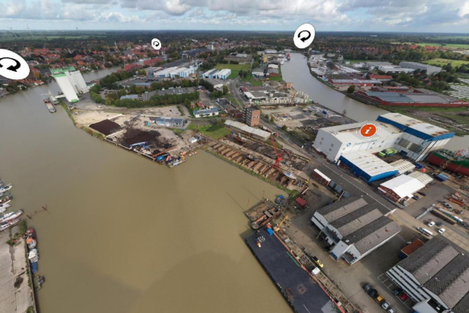 Leeraner Hafen aus der Vogelperspektive betrachten