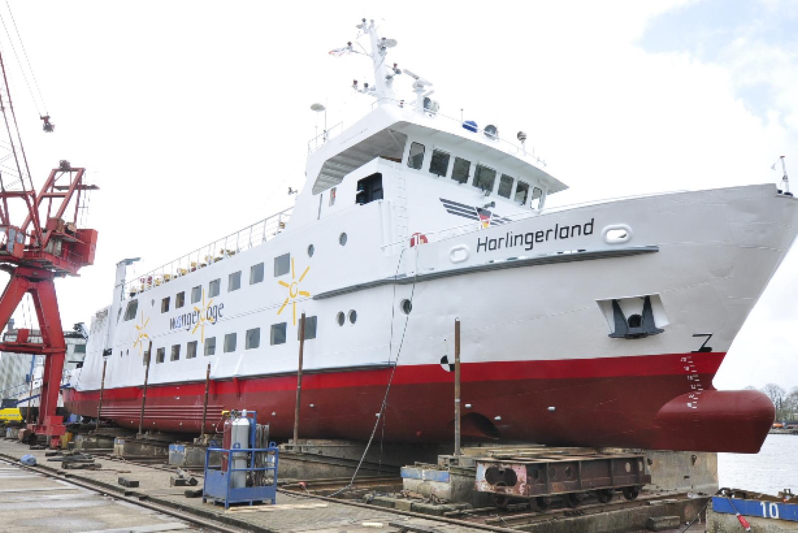 Auf der Werft der SEC GmbH & Co. Shipservices KG in Leer lässt die Deutsche Bahn ihre beiden Fähren modernisieren, die im Inselverkehr von Harelsiel nach Wangerooge eingesetzt werden. Seit Januar lag die 46,50 Meter lange und 8,50 Meter breite »...