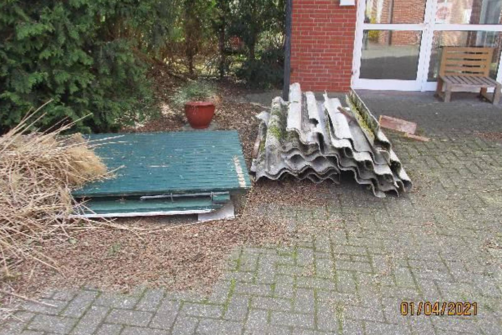 In einem Zeitraum von zwei Wochen vor dem 1. April kam es auf dem Grundstück einer Kirchengemeinde am Hoheellernweg in Leer zu der unerlaubten Entsorgung einer größeren Menge (15 bis 20 Stück) von möglicherweise asbesthaltigen und teilweise zerbrochenen Eternitplatten.