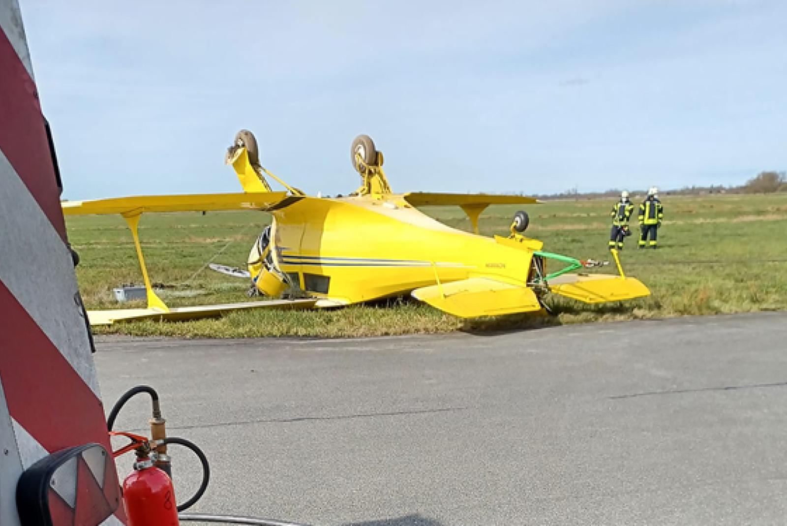 Die beiden an dem Unfall Beteiligten wollten gegen 15 Uhr mit einem historischen Doppeldecker aus den 1930er Jahren zu einem Flug starten. In der Startphase wurde die Maschine laut Feuerwehr vermutlich von einem Seitenwind erfasst, das Flugzeug drehte sich und stürzte kopfüber neben die Start- und Landebahn.