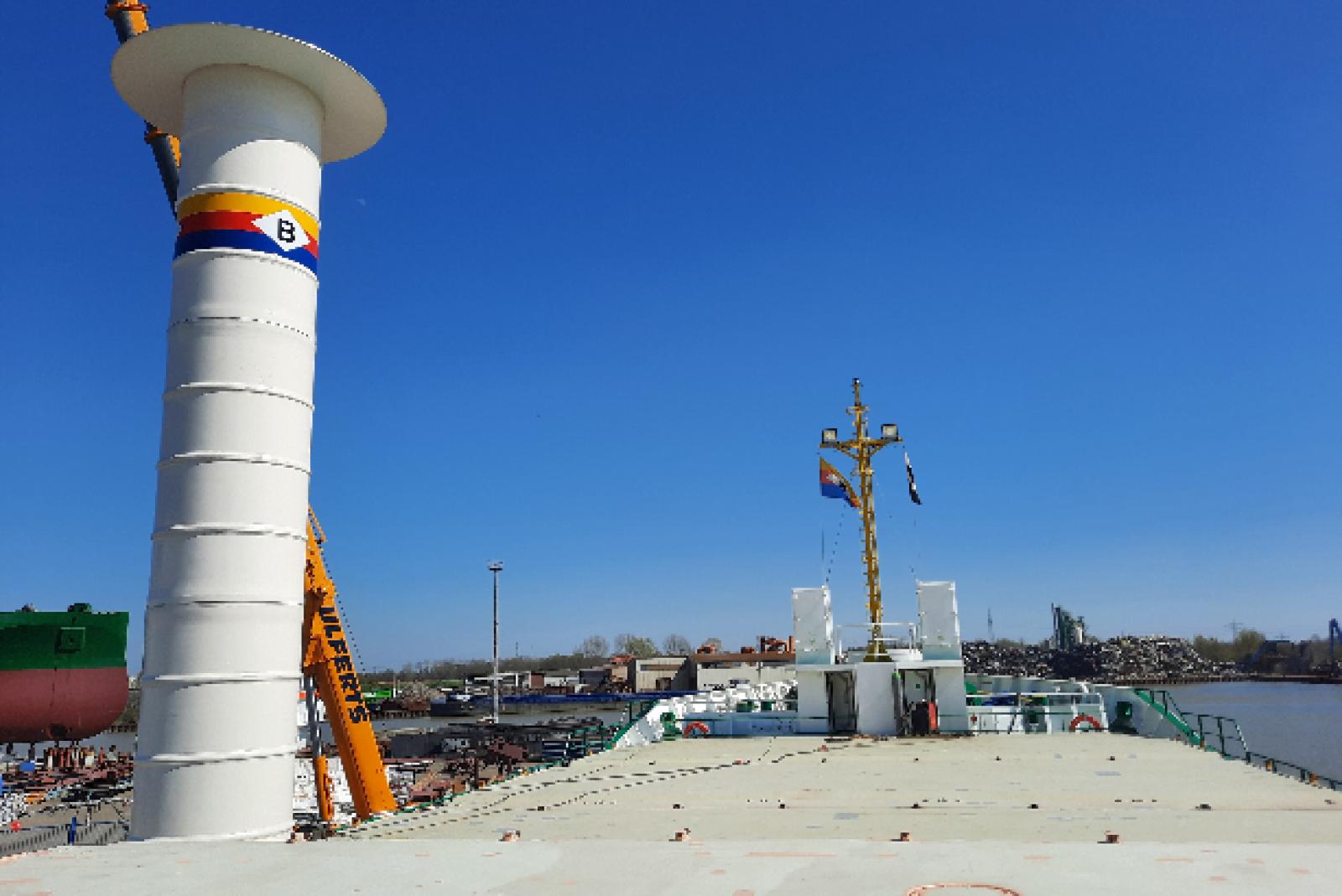 Die Dimension des Projektes wird allein durch den mächtigen Autokran der Neermoorer Firma Ulferts deutlich, der zurzeit auf dem Gelände der Werft SEC Ship Services im Leeraner Hafen steht: Allein das Fundament für den 18 Meter hohen Rotorzylinder »...
