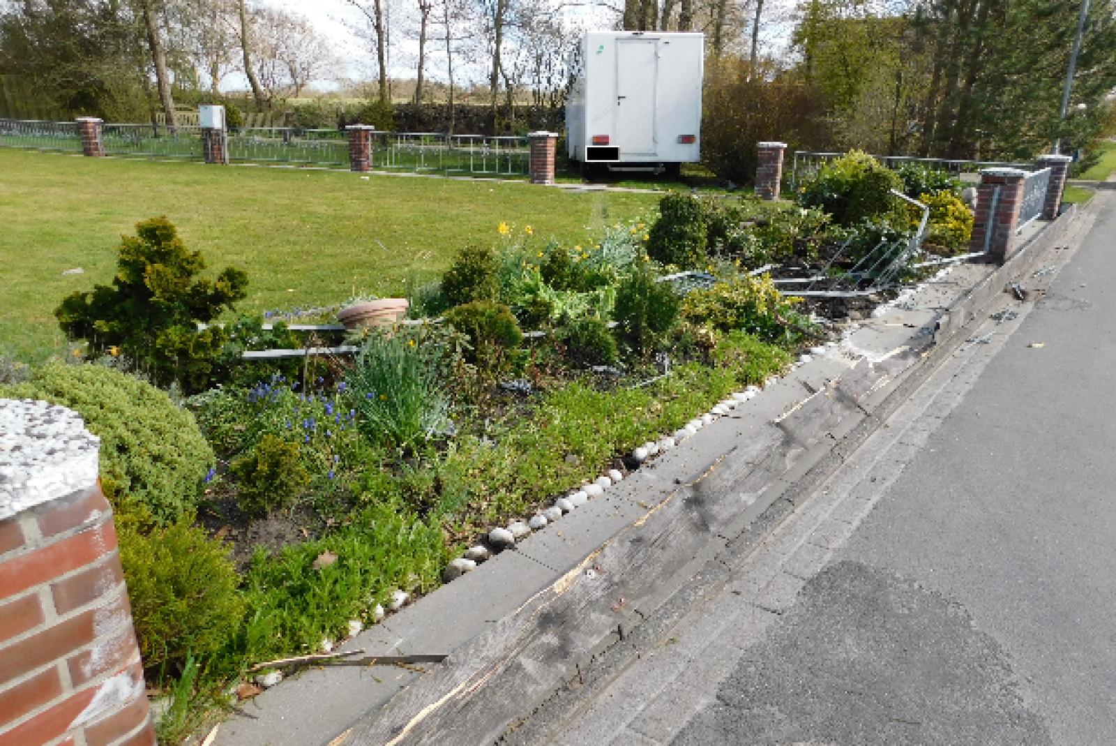 Der unbekannte Unfallverursacher fuhr weiter in Richtung Nenndorf und entfernte sich somit von der Unfallstelle, ohne sich um die Folgen des Unfalls zu kümmern. Der Schaden beläuft sich auf eine hohe, vierstellige Summe.