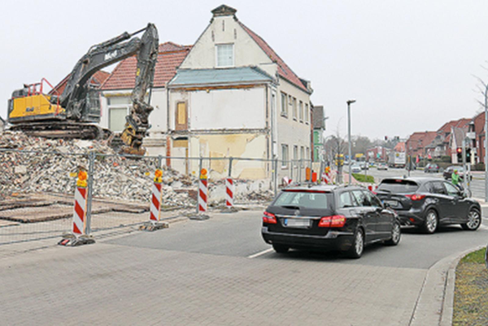 Jetzt geht es los: Am Ende der Osterstraße klafft in der Häuserreihe eine Lücke. Außerdem haben einige Gebäude die Rückseite verloren. Der Abrissbagger hat ganze Arbeit geleistet, damit die Neugestaltung des Bereichs zwischen Osterstraß...