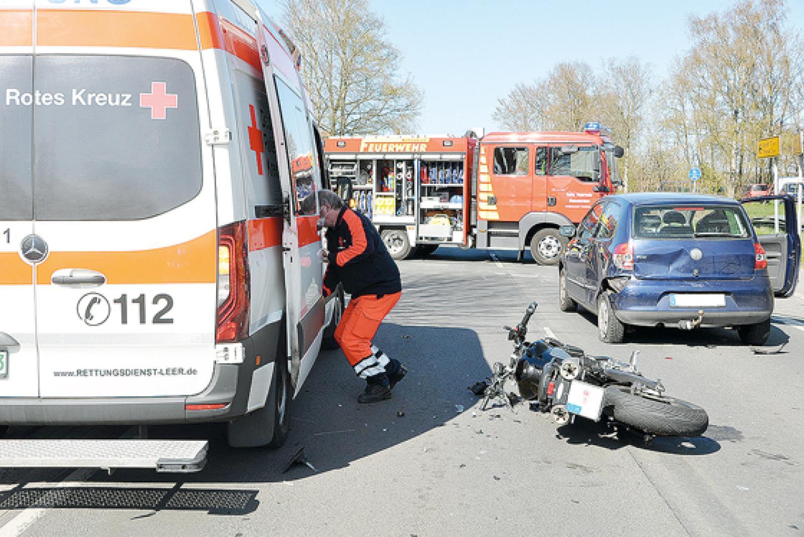 Schwerste Verletzungen hat heute gegen 14.45 Uhr eine Motorradfahrerin aus Wiesmoor in Hatshausen in der Gemeinde Moormerland bei einem Unfall auf der Timmeler Straße kurz vor der Kreuzung zwischen der Hatshausener Straße und der Klosterstraße erlitten. Sie schwebt ...