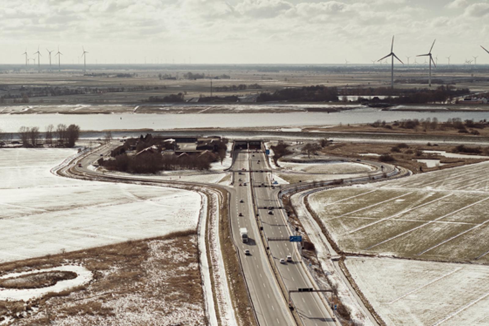 Hier ein Blick aus der Vogelperspektive auf die Autobahn 31 im Bereich des Emstunnels.