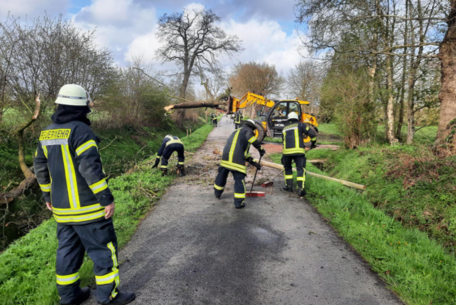 Mitglieder der Feuerwehr Strackholt beseitigten den umgestürzten Baum.