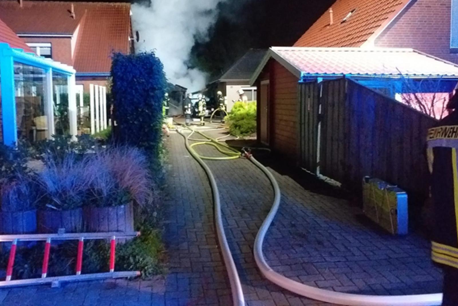 Hoher Sachschaden entstand in der vergangenen Nacht bei einem Lauben- und Schuppenbrand in der Lise-Meitner-Straße in Emden. Die Feuerwehr konnte eine Brandausbreitung auf zwei Wohnhäuser verhindern.