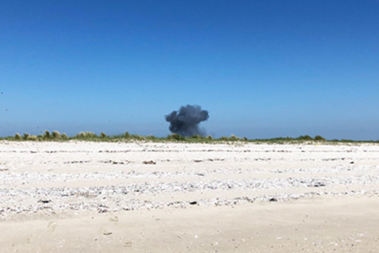 An der Ostspitze der Insel Juist musste heute ein Torpedo aus dem Zweiten Weltkrieg kontrolliert gesprengt werden. Das Geschoss war bei Arbeiten für eine Offshore-Stromtrasse gefunden worden.