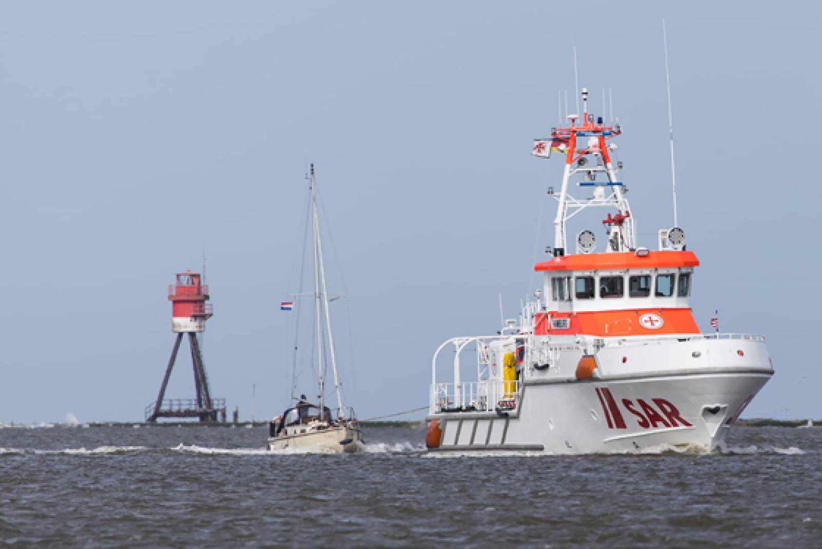 Aus einer lebensbedrohlichen Situation haben die Seenotretter der Station Borkum der Deutschen Gesellschaft zur Rettung Schiffbrüchiger (DGzRS) am Samstag einen Wassersportler befreit. Das Boot des Mannes hatte in der Deutschen Bucht in einem Großschifffahrtsweg einen Maschinenausfall erlitten. Da sich die angegebene Position in der Nähe eines Großschifffahrtsweges befand, gingen die Seenotretter davon aus, dass er mit der Tide in diesen Bereich vertreiben und damit in höchste Gefahr geraten würde. Das Verkehrstrennungsgebiet ist wie eine Autobahn auf See und die hier fahrenden Schiffe sind nicht in der Lage, kurzfristig Hindernissen auszuweichen. Für dieses Gebiet gelten deshalb bestimmte Befahrensregeln und Vorsichtsmaßnahmen, so die DGzRS. Der Seenotrettungskreuzer »Hamburg« der Station Borkum lief sofort aus. Angesichts der hochdramatischen Lage legten die Seenotretter nahezu die gesamte Strecke von 21 Seemeilen (rund 39 Kilometer) zum Havaristen unter Höchstgeschwindigkeit von 24 Knoten (rund 44 Stundenkilometer) zurück. Zwischenzeitlich hatte ein Windparkversorgungsschiff Sichtkontakt zum Segelboot und konnte die exakte Position mitteilen. Erst jetzt stellte sich heraus, dass es längst im Verkehrstrennungsgebiet trieb.