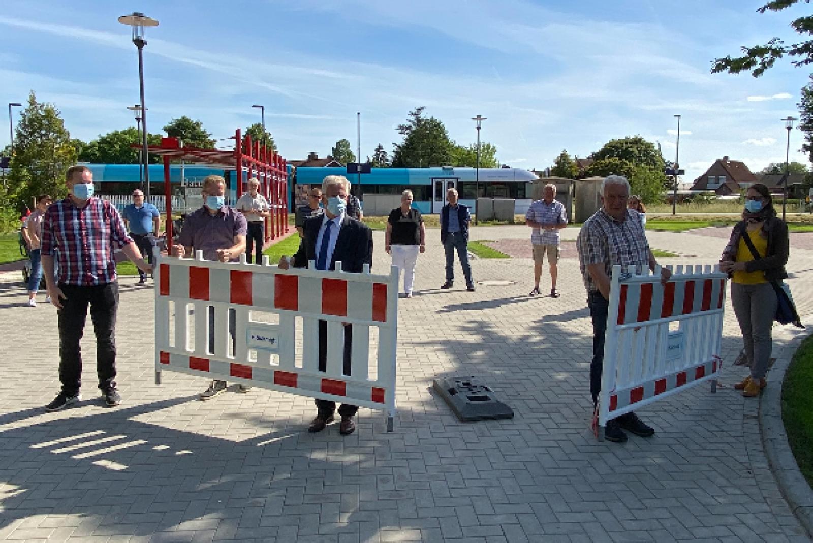Nach etwa achtmonatiger Bauzeit eröffnete Bürgermeister Ludwig Sonnenberg heute das neu gestaltete und jetzt barrierefreie »Bahnhofsumfeld« in Weener zwischen der Wiesenstraße und dem Bahnsteig der Deutschen Bahn. »Die Fertigstellung ist ein großer Schritt nach vorne, jetzt ...
