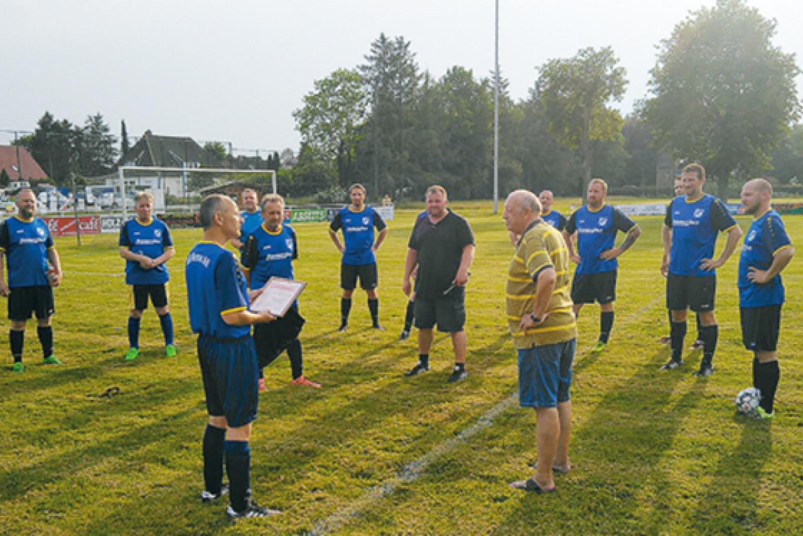 Die Alte-Herren-Mannschaft des TuS Weener trat kürzlich im Heimspiel gegen das Team des SV Nortmoor an. Vor dem Spiel ehrte die Mannschaft Bernhard »Bernie« Dreesmann für 60 Jahre Mitgliedschaft im TuS Weener. Dreesmann war langjähriger Spieler der 2. Alten ...