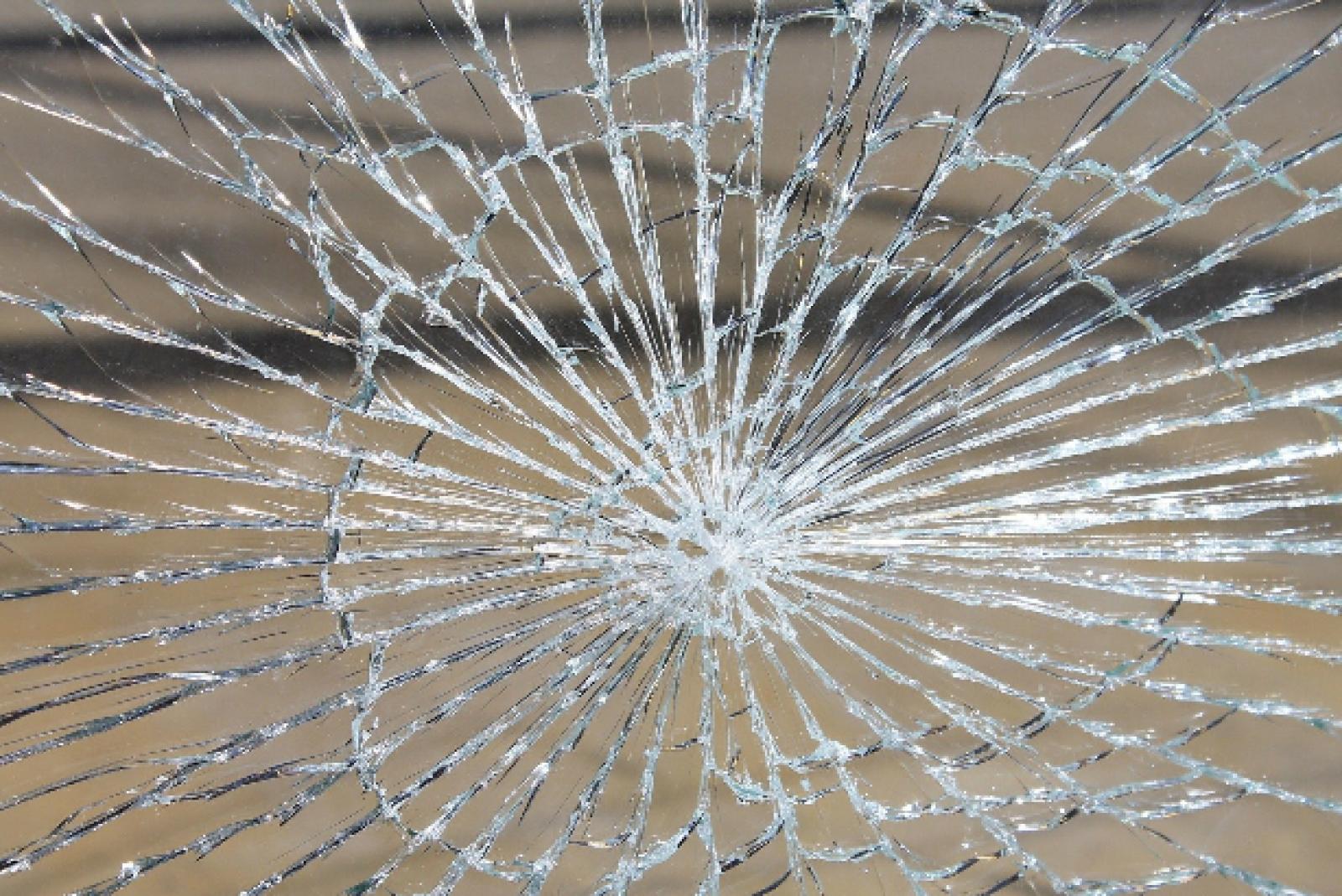 Frontscheibe mit Pflasterstein eingeworfen