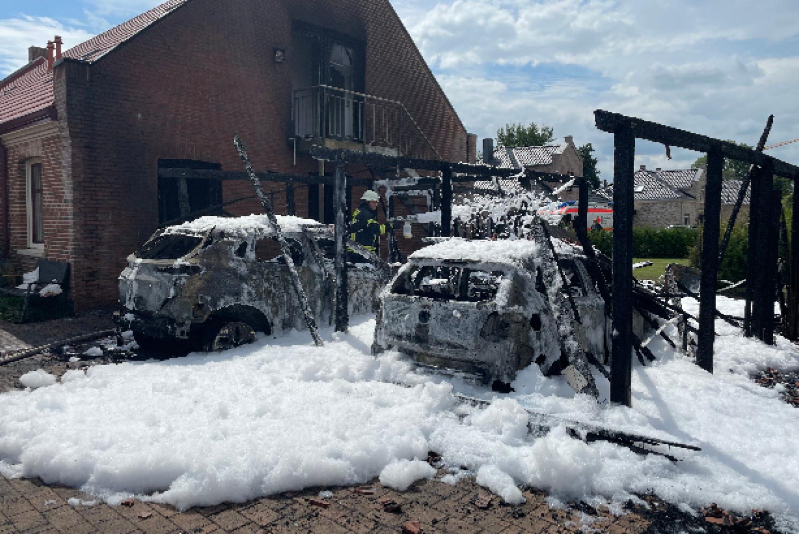 Auch am zweiten Gebäude entstand durch die Hitze ein Schaden. Beide Autos, darunter ein Elektrofahrzeug und die Carports brannten vollständig aus.