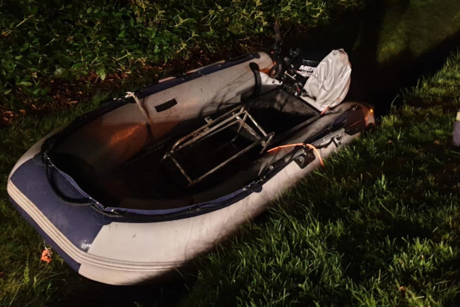Ein nicht alltägliches Bild bot sich den Einsatzkräften. Vor Ort befand sich ein Boot mit Außenbordmotor im Graben.