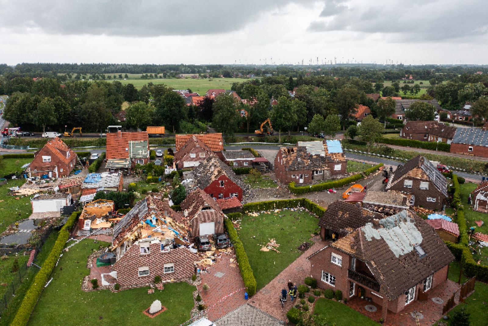 Nach dem Tornado in der Gemeinde Großheide im Kreis Aurich wird das Ausmaß der massiven Schäden langsam absehbar. Insgesamt sei nach ersten vorläufigen Schätzungen von einem Schaden in mittlerer zweistelliger Millionenhöhe auszugehen, sagte der Bü...