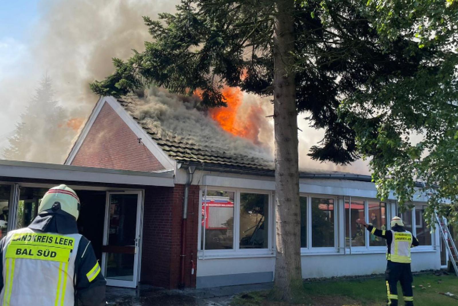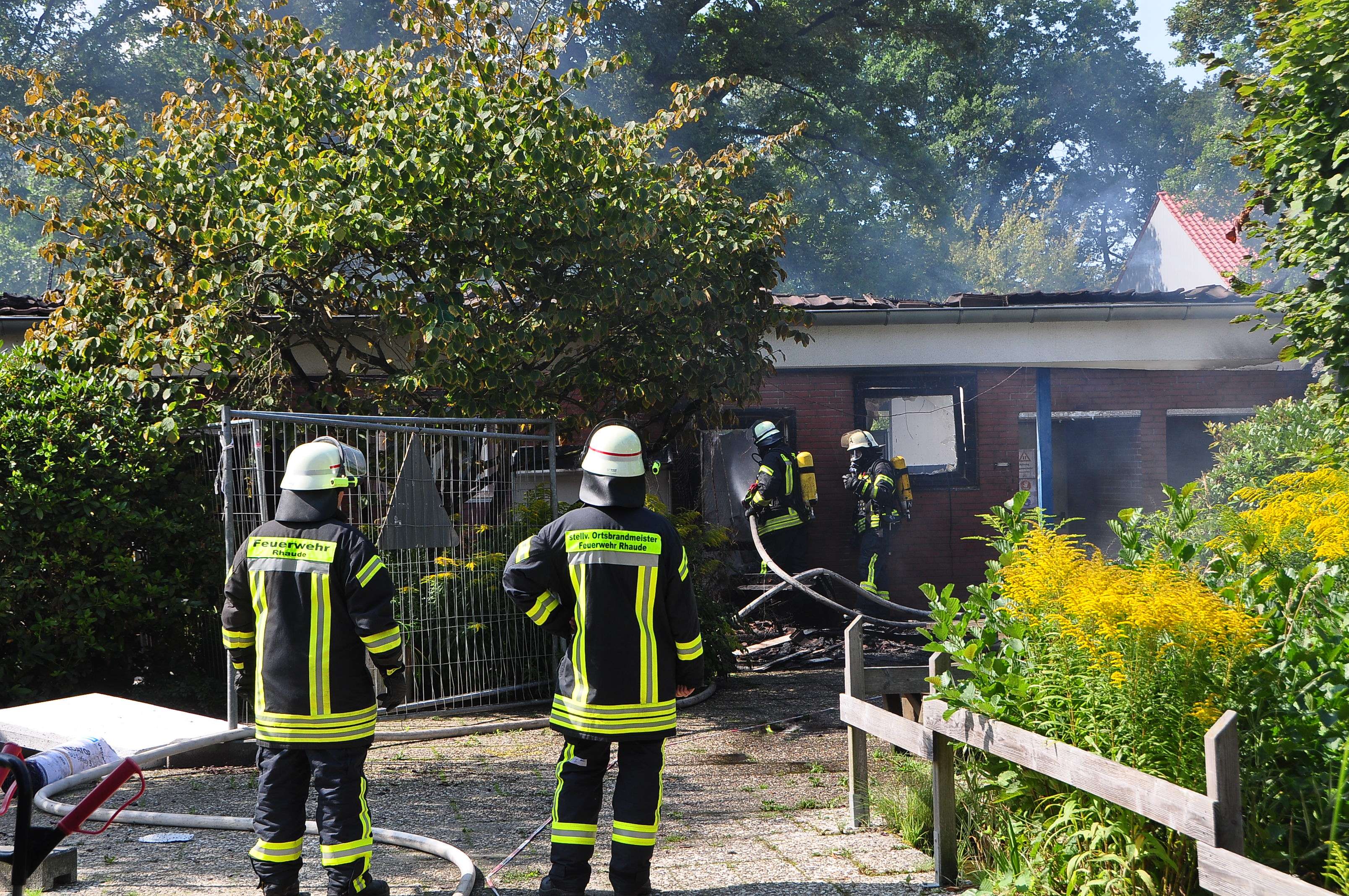 Mehrere Gebäudeteile der Grundschule Collinghorst stehen in Vollbrand. Laut Feuerwehr ist der Brand unter Kontrolle. Die Löscharbeiten werden noch mehrere Stunden andauern. Bei dem Feuer wurden zwei Mitarbeiter einer Handwerksfirma die mit Arbeiten an der Schule beschäftigt waren, leicht verletzt und mussten durch den Rettungsdienst ins Krankenhaus gebracht werden. Zur Brandursache können noch keine Angaben gemacht werden. Auch die Schadenshöhe ist derzeit noch unklar. Ein Schulbetrieb sei allerdings auf keinen Fall mehr möglich, wie Dominik Janßen, Sprecher der Kreisfeuerwehr, sagte.
