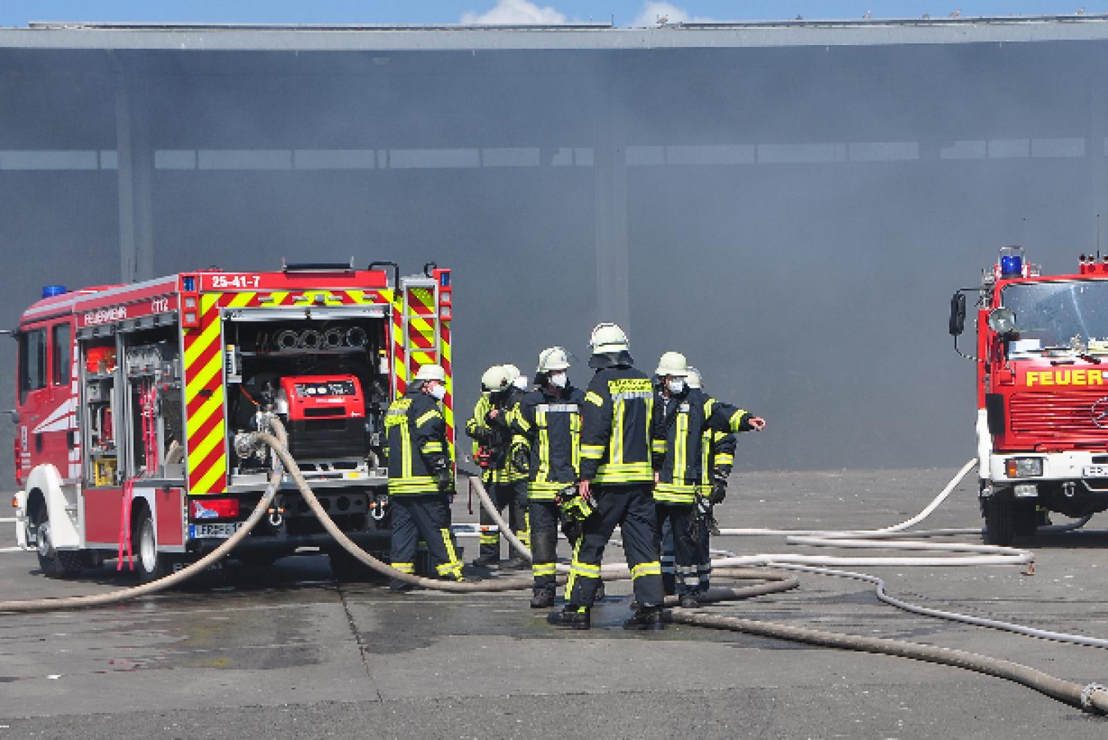 Müll in Deponie-Halle fängt Feuer