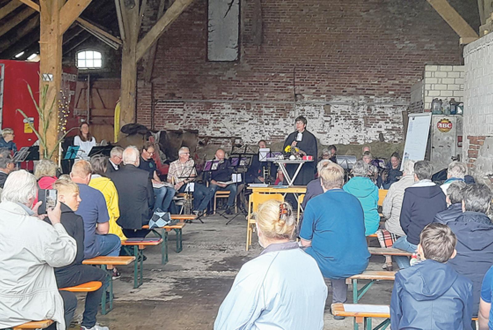 Ein Hofgottesdienst mit rund 50 Gästen ist am Sonntagvormittag auf dem Hof von Familie Brink in Vellage gefeiert worden. Begleitet wurde der Gottesdienst vom Posaunenchor Weener und dem Flötenkreis Vellage. Pastorin Inka Dohrmann-Westerdijk predigte über die Wichtigkeit der bä...