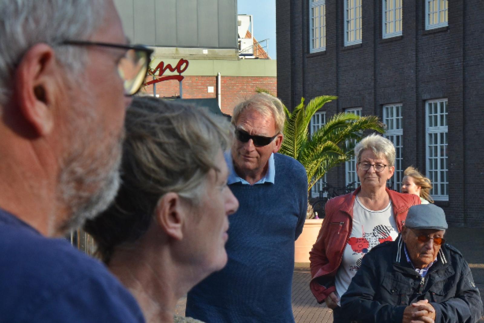 Menschenkette auf dem Denkmalsplatz in Leer diesmal im Gedenken an Esther Bejarano - Rund 60 Teilnehmende