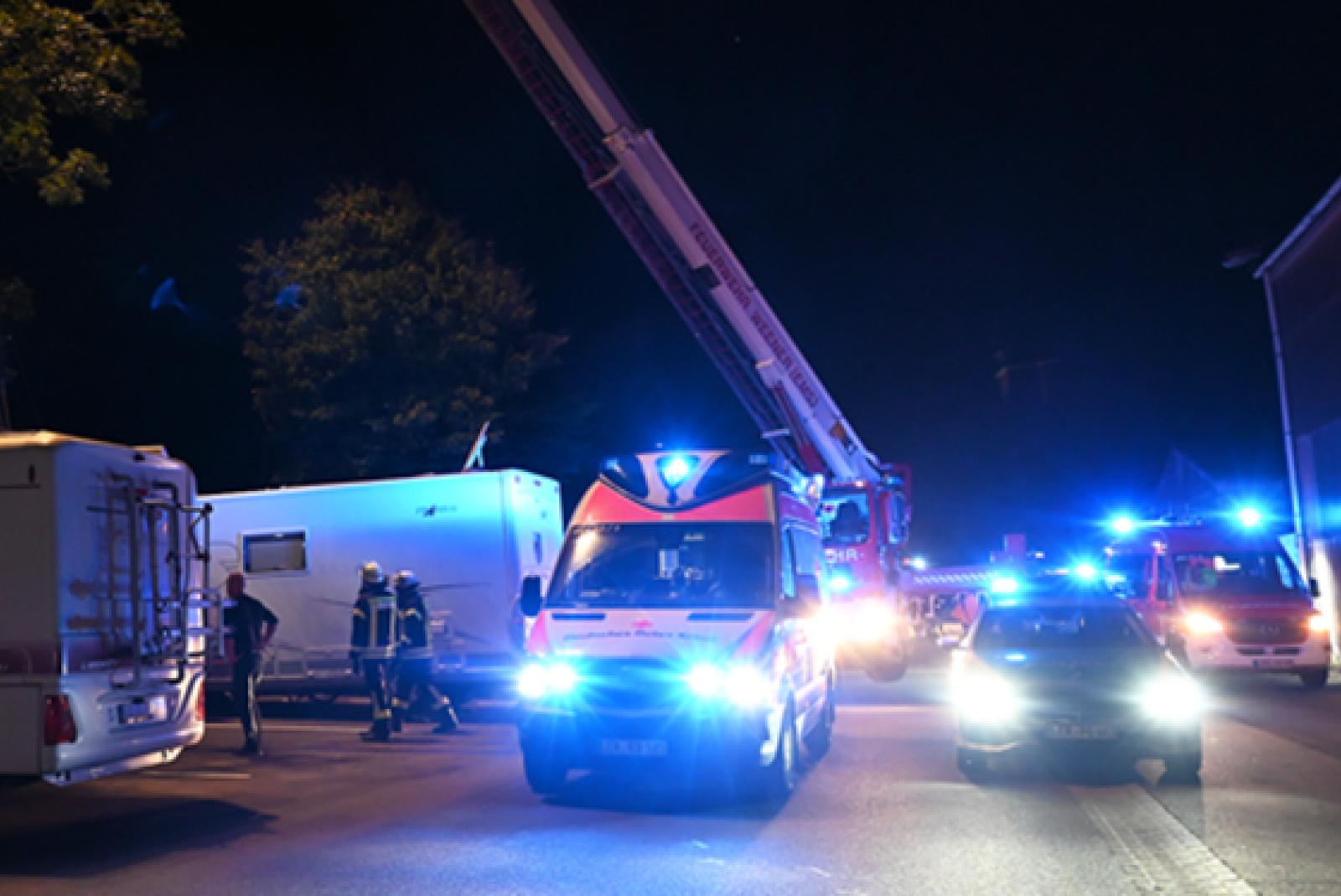 Laut Stadtbrandmeister Jörg Fisser unterstützten die Einsatzkräfte der Feuerwehr noch den Rettungsdienst und mit den Flutlichtstrahlern der Hubrettungsbühne wurde die Einsatzstelle ausgeleuchtet.