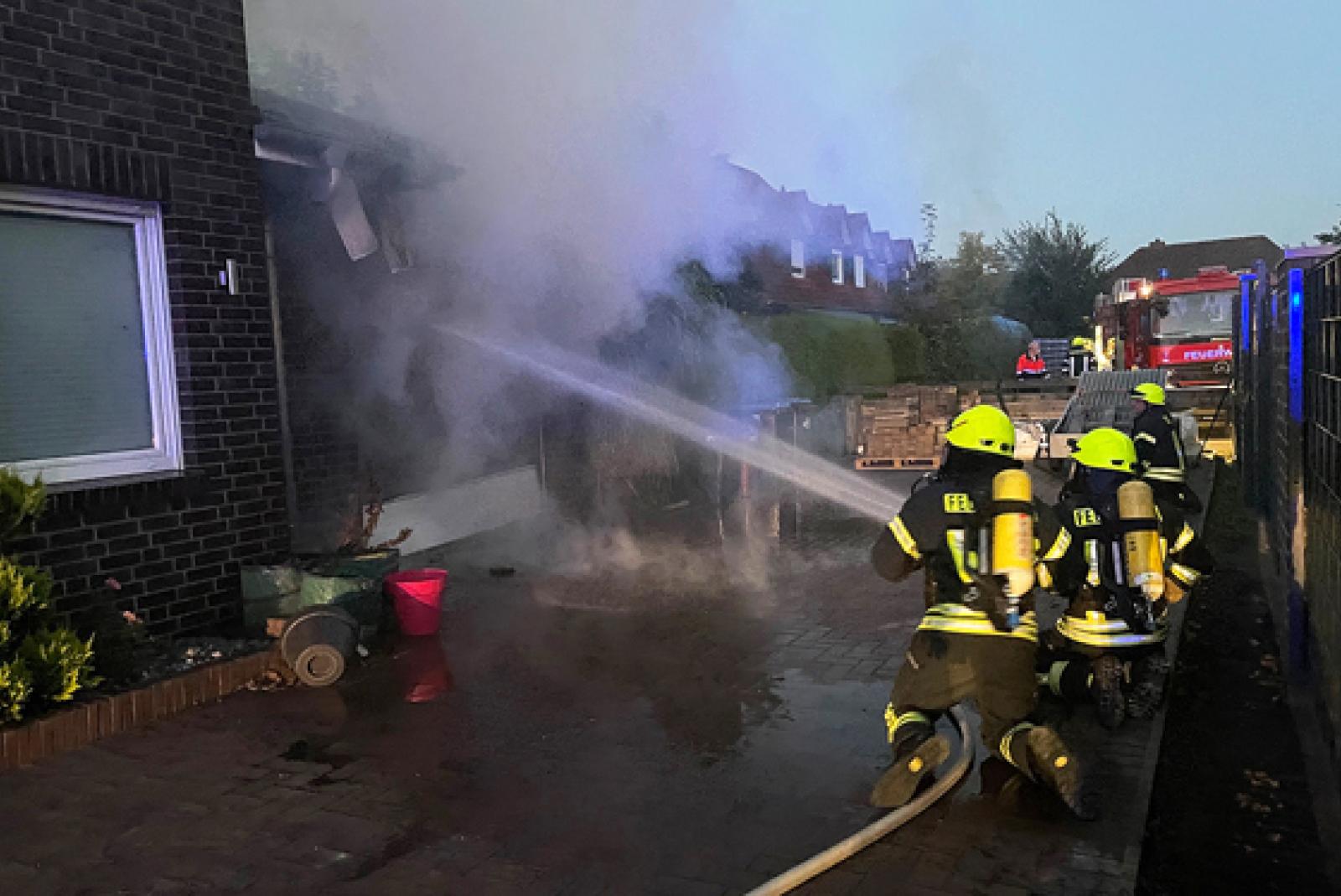 Am Donnerstag Abend wurden Feuerwehr und Polizei zu einem Einsatz an der Clemenswerthstraße in Papenburg alarmiert. Aus bisher ungeklärter Ursache kam es gegen 20.30 Uhr zu einem Brand in der Garage eines Einfamilienhauses. Verletzt wurde niemand. Die Garage brannte vollständig aus. Auch die Dachüberstände des Einfamilienhauses waren durch die große Wärmestrahlung in Brand geraten. Die Feuerwehren aus Papenburg Obenende, Untenende und Aschendorf waren mit zwölf Fahrzeugen und 70 Einsatzkräften vor Ort. Die Höhe des Sachschadens, der durch das Feuer entstand, wird von der Polizei auf etwa 80.000 Euro geschätzt.