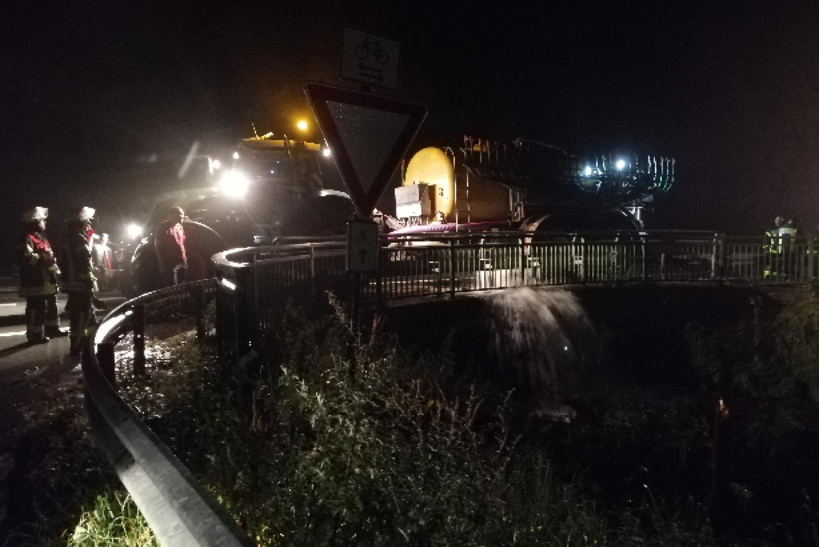 Das Regenwasser wurde mit den Güllefässern abgepumpt und in den Ringkanal wieder abgelassen oder auf Flächen und in Gräben gepumpt, die noch Wasser fassen konnten.