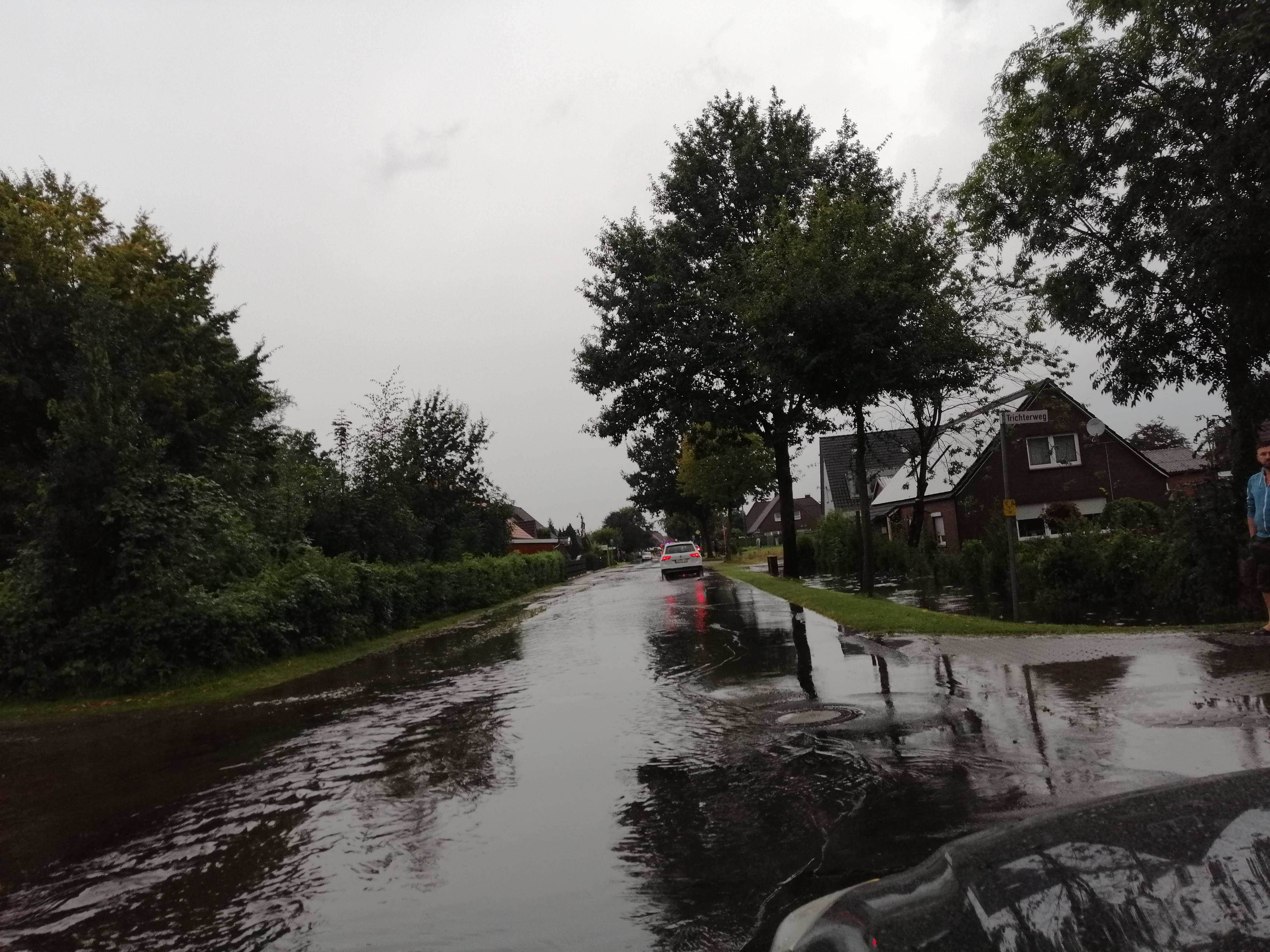 Über Teile der Gemeinde Südbrookmerland (Landkreis Aurich) ging am Freitagabend ein 45 Minuten lang anhaltender Starkregen hernieder. Teilweise war eine Sicht unter einem Meter vorhanden, sodass auf einigen Straßen der Verkehr zum Erliegen kam. In 48 Notrufen wurde über in Wohnhäuser eindringendes Wasser berichtet. 120 Feuerwehrleute sowie Landwirte und Anwohner kämpften bis 2.30 Uhr in der Nacht gegen die Wassermassen.