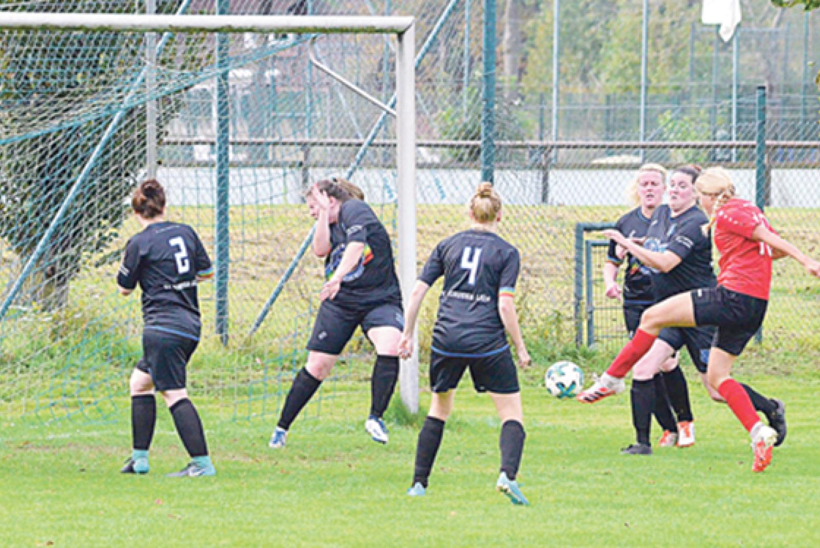 Immer wieder wurde die Hintermannschaft der Gastgeberinnen in Bedrängnis gebracht werden. Durch ein Tor von ...